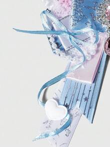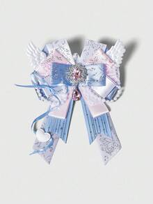 Anime 1pc Blue Kawaii Cute Music Note Lace Patchwork 3D Wing Y2K Star Foil Print Bow Brooch, Handmade Lolita Brooch For Clothes, Bag, Pants, Skirt Decoration