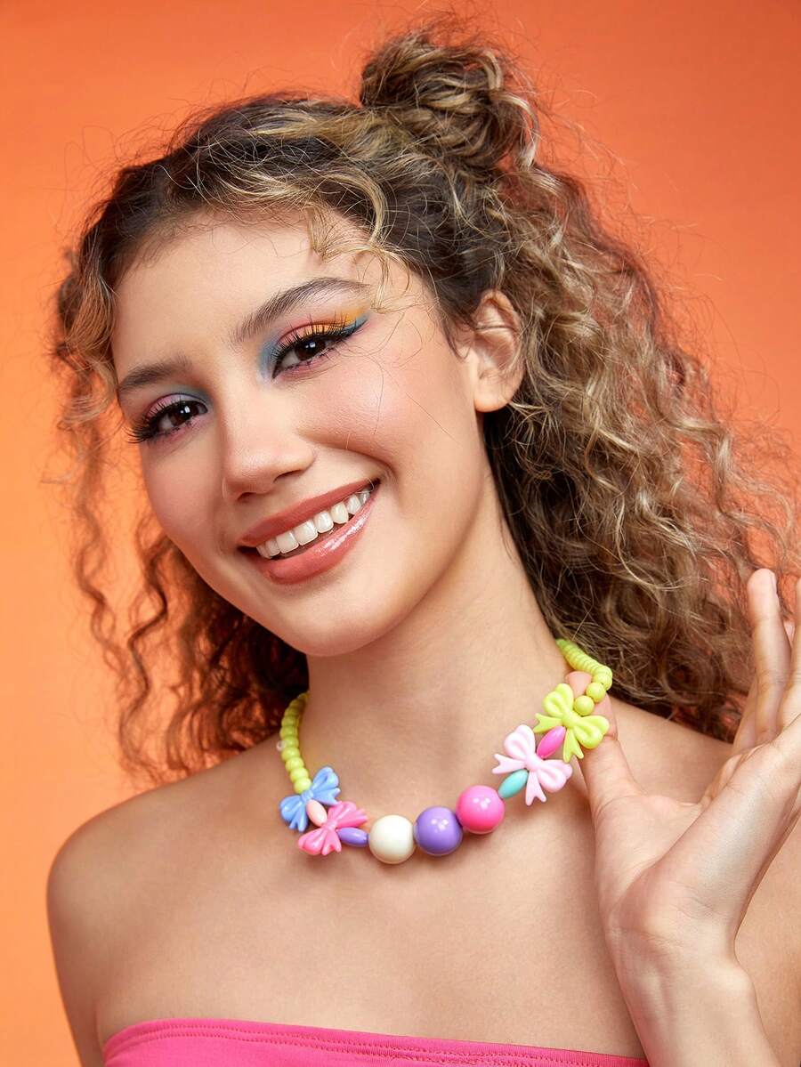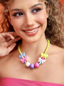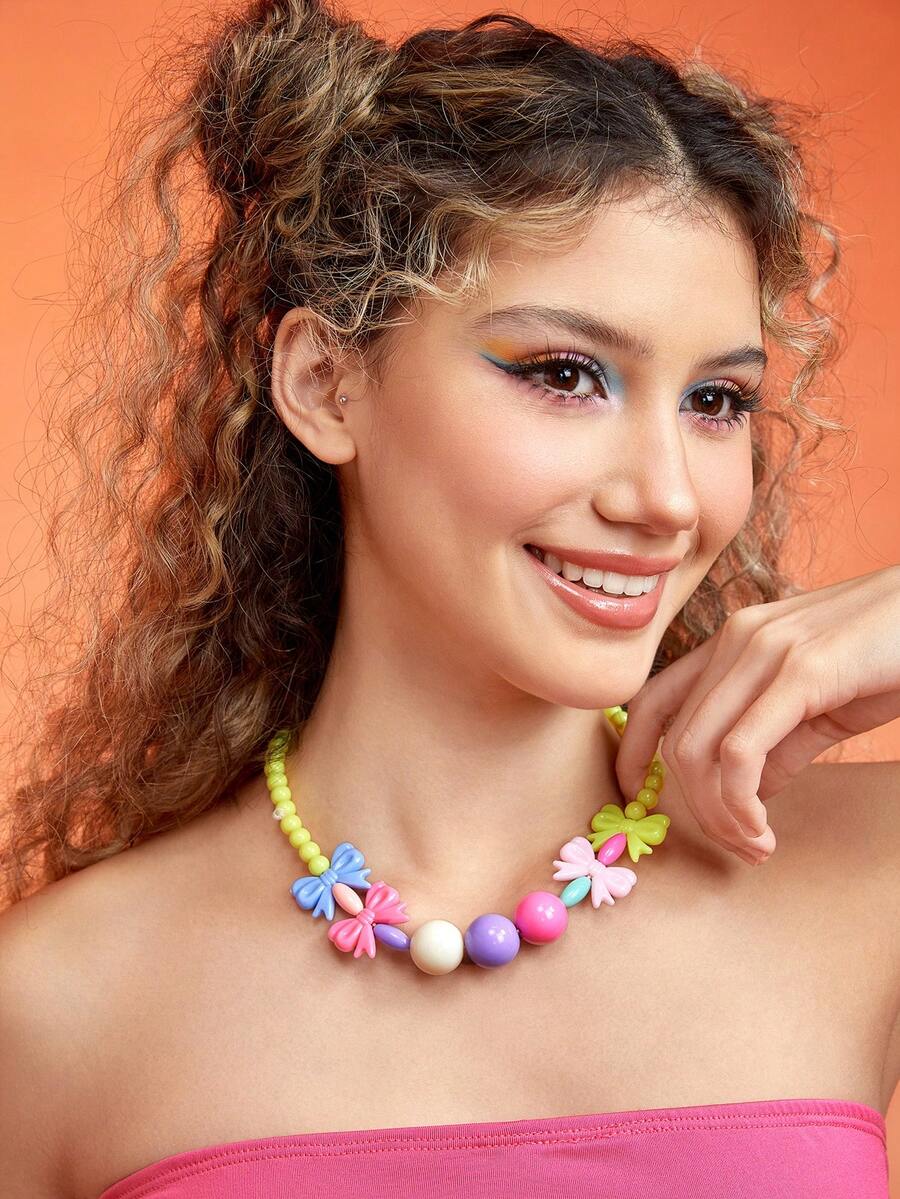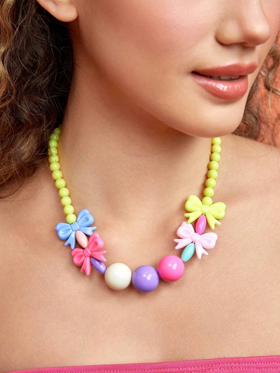 Anime 1pc Cute Random Bow Decor Beaded Necklace For Women For Daily Decoration