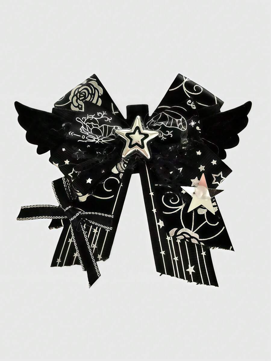 Anime 1pc Kawaii Sweet Cute Music Note Print Lace Patchwork 3D Wing Y2K Star Foil Print Bow Shaped Keychain & Keyring, Handmade Lolita Campus Card Holder Bag Charm