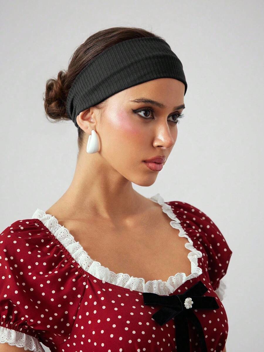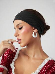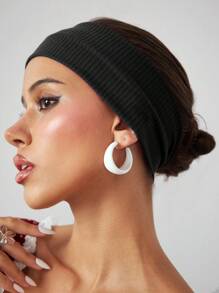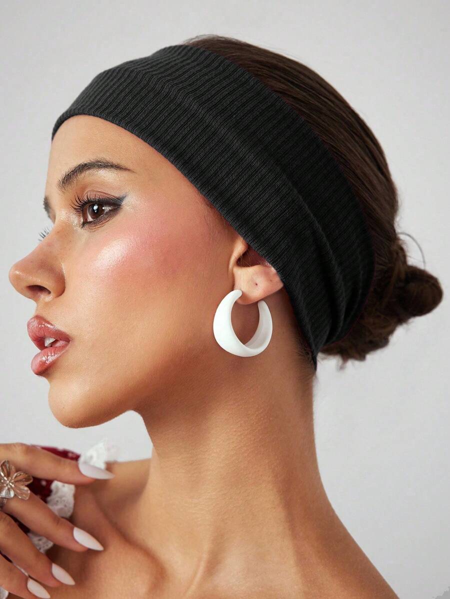 Anime 1pc Punk Fashion Knitted Headband, Minimalist Black Solid Color Wide Headband, Versatile Personalized Hair Accessory