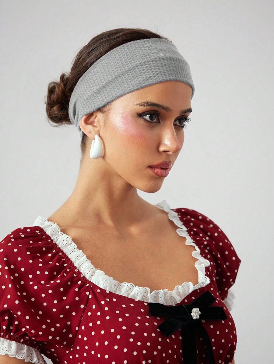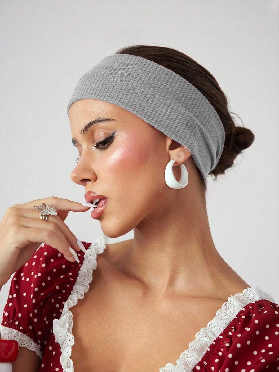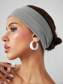 Anime 1pc Punk Fashion Knitted Headband, Minimalist Dark Grey Solid Color Wide Headband, Versatile Accessory For Daily Wear