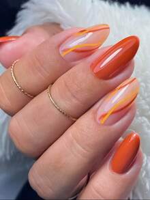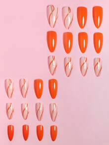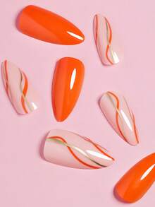 Anime 24pcs Long Almond Striped Fake Nail & 1pc Nail File & 1sheet Tape