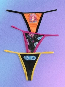 Anime 3pack Cartoon Graphic Contrast Binding Thong