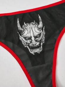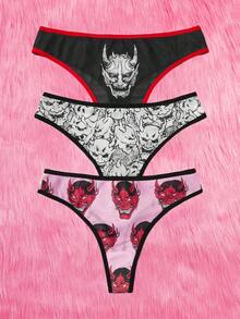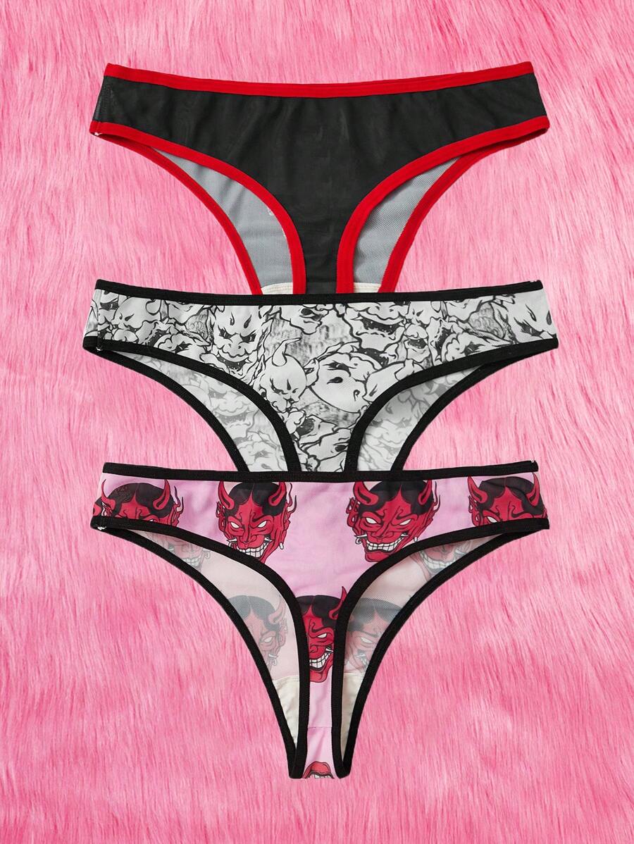 Anime 3pack Graphic Contrast Binding Mesh Thong Set