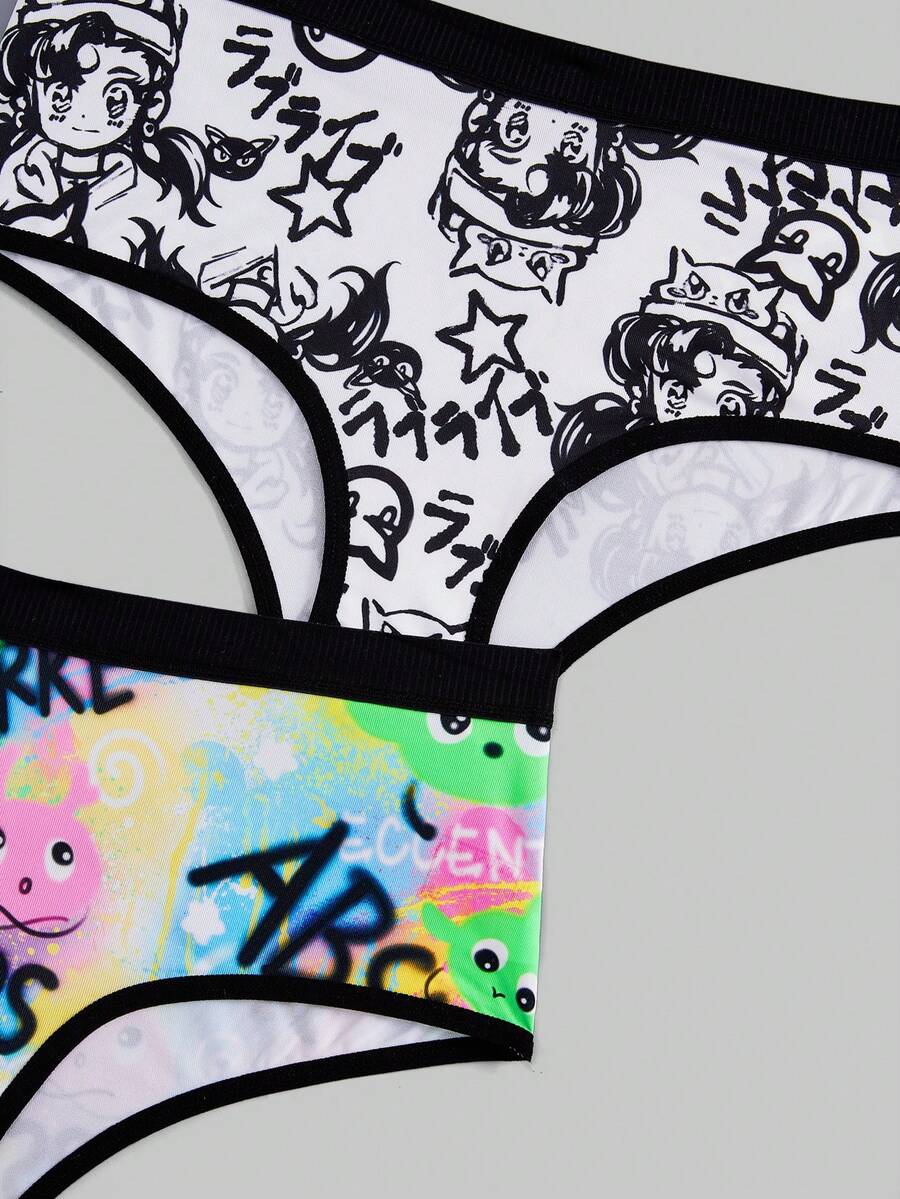 Anime 3pcs/Set Color-Blocked Graffiti Printed Triangle Underwear With Edging Trim Sports