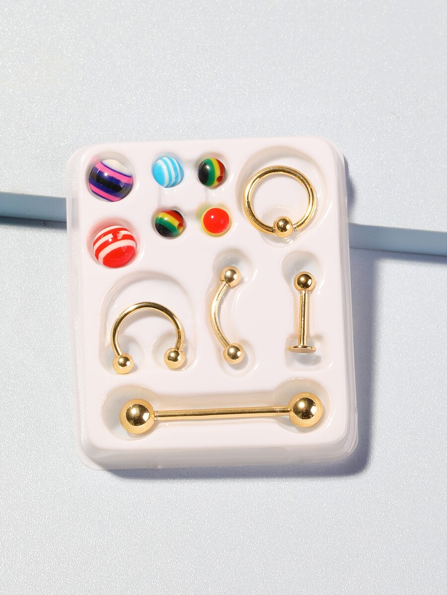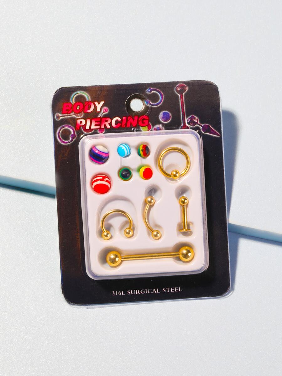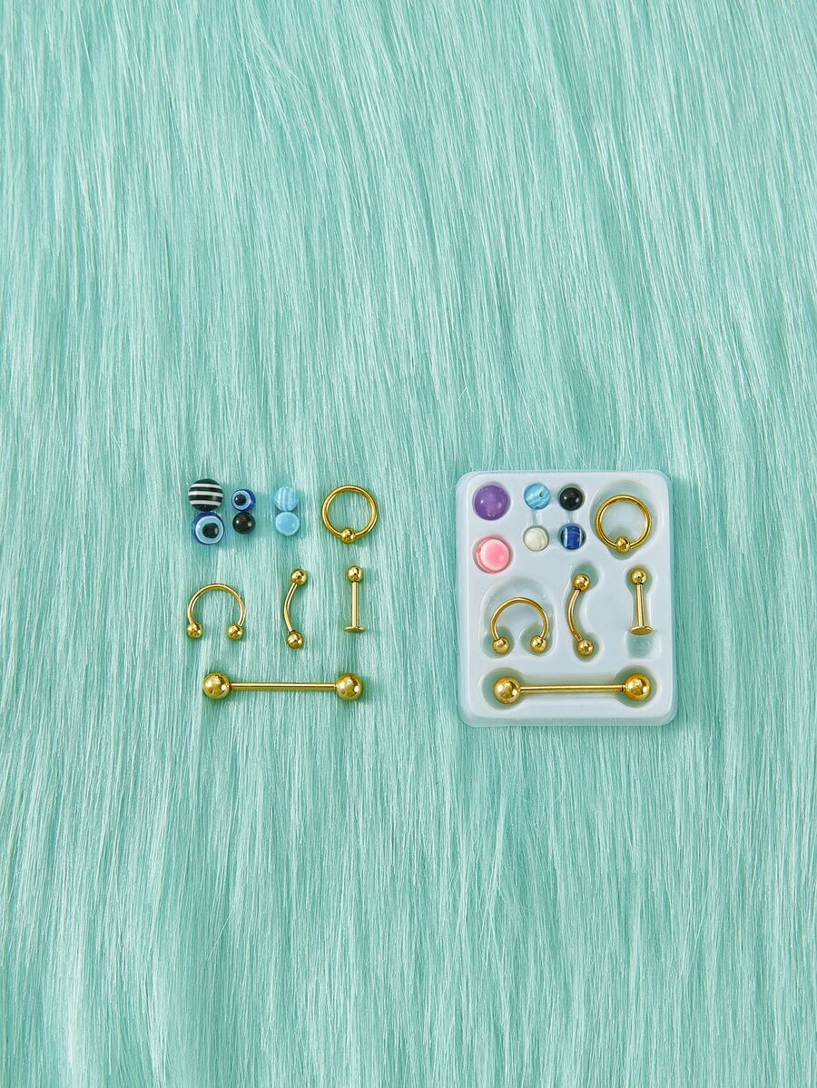 Anime 5pcs Nose Ring & 6pcs Random Graphic Bead