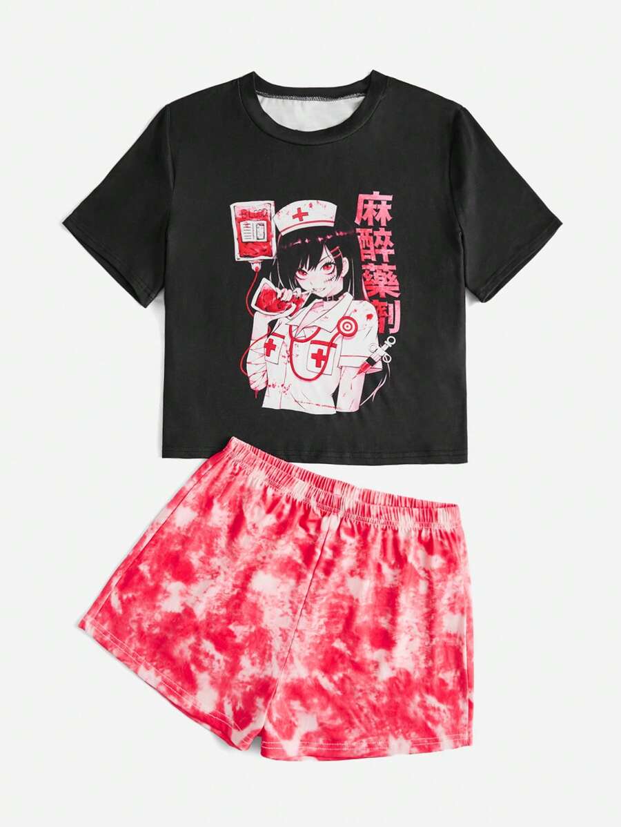 Anime Cartoon Figure Graphic Tie Dye PJ Set