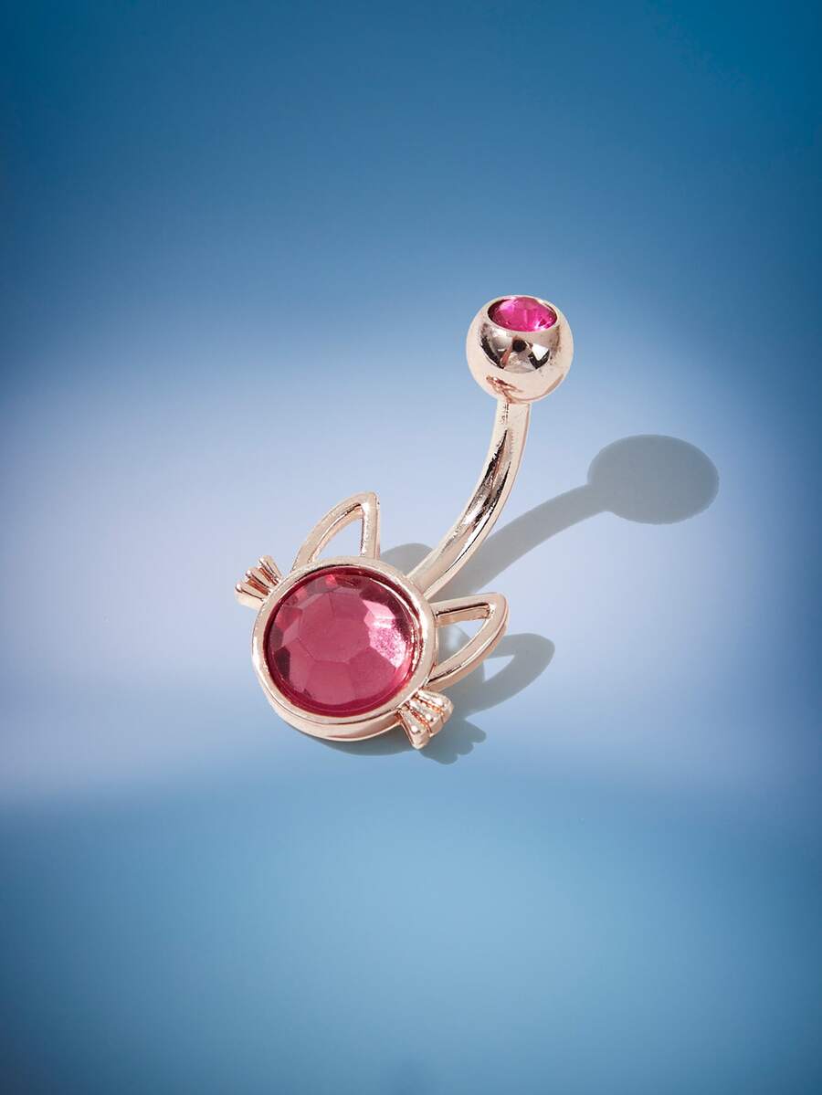 Anime Cubic Zirconia Cat Head Decor Navel Belly Ring