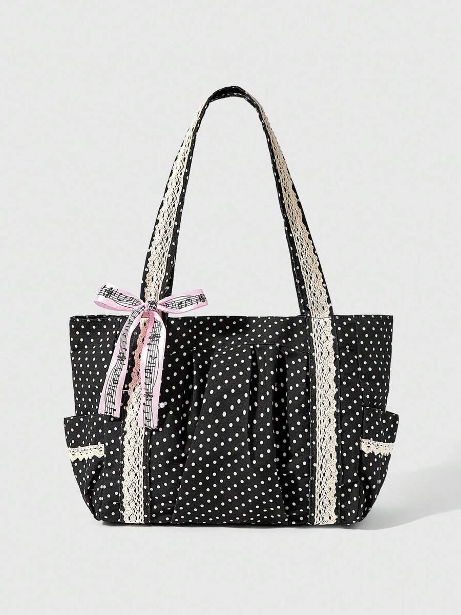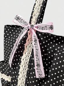 Anime Cute Bow Vintage Heart Shaped Women's Shoulder Bag Minimalist Polka Dot Summer Flower & Music Note Large Capacity Tote Bag, Fits Laptop, Suitable For Daily Commute