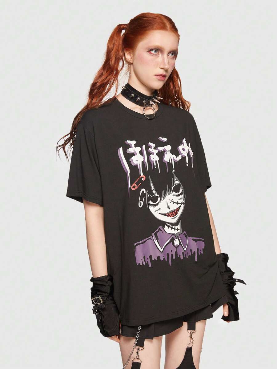Anime Figure Graphic Drop Shoulder Tee