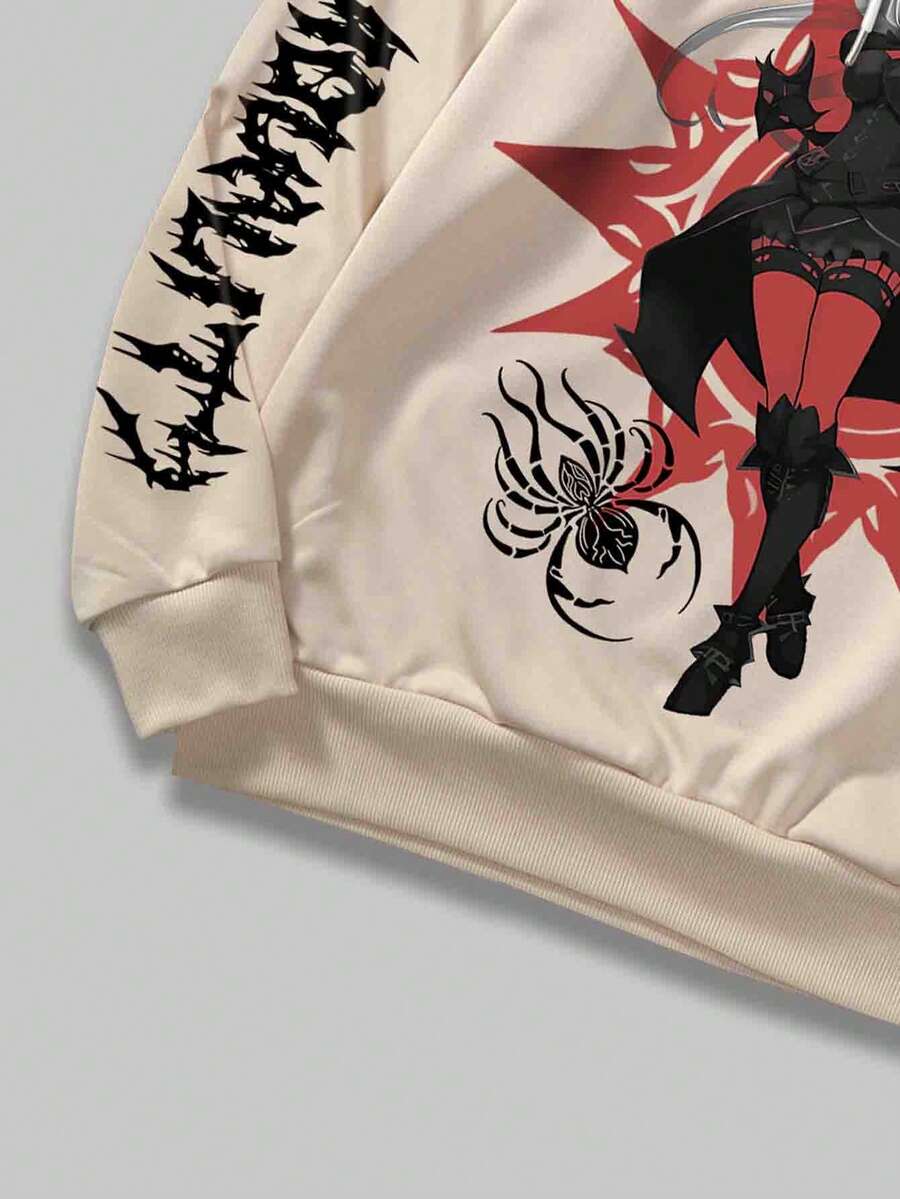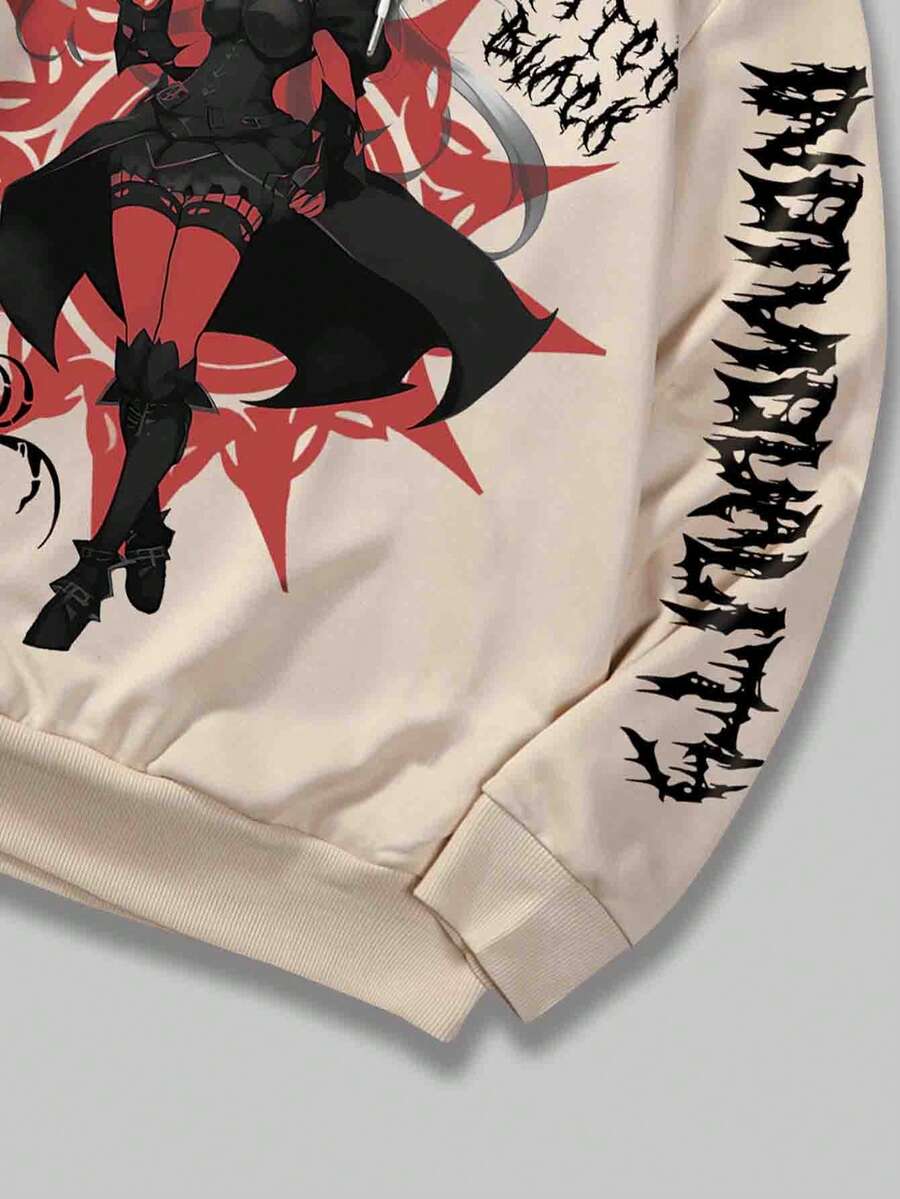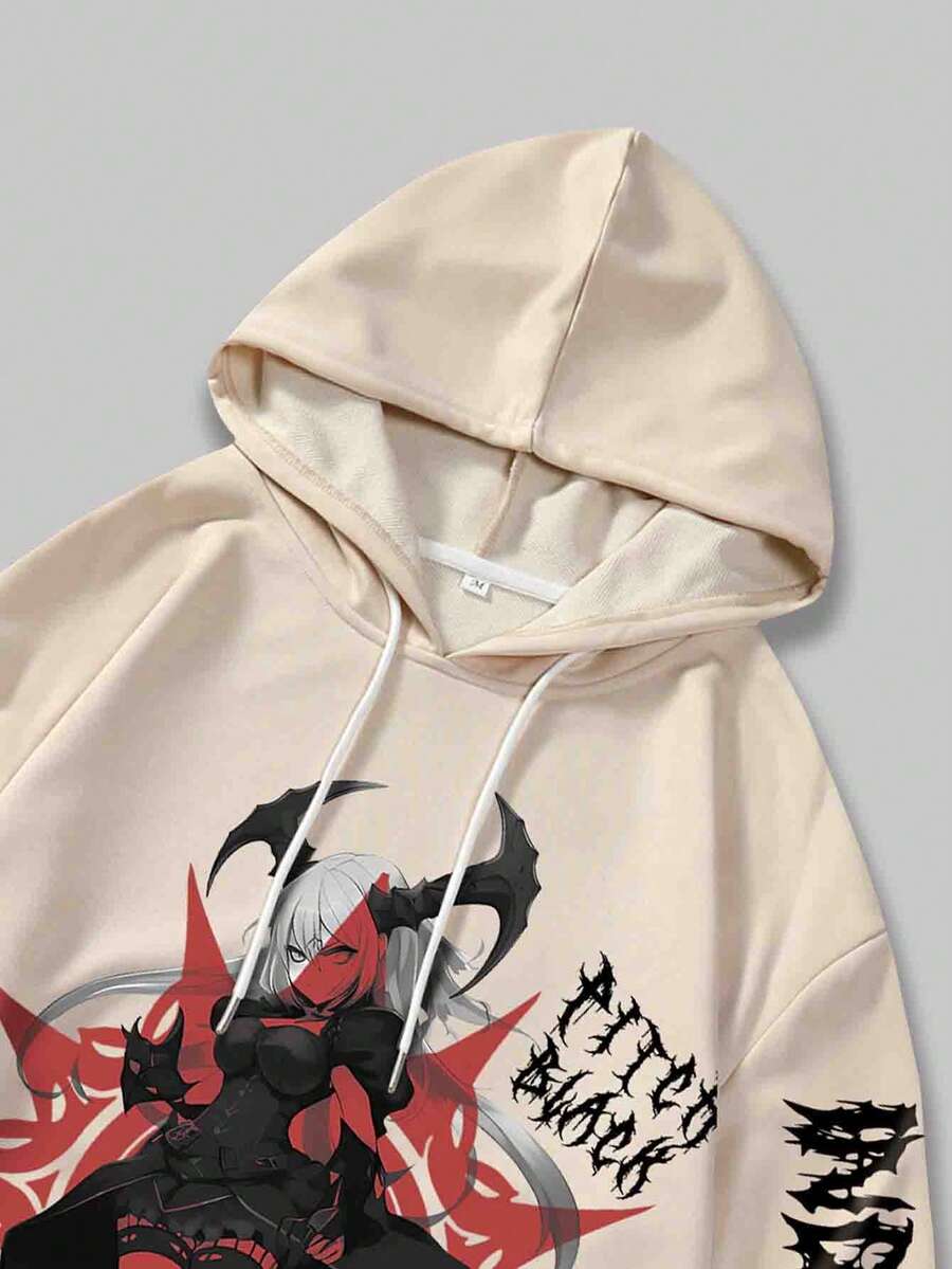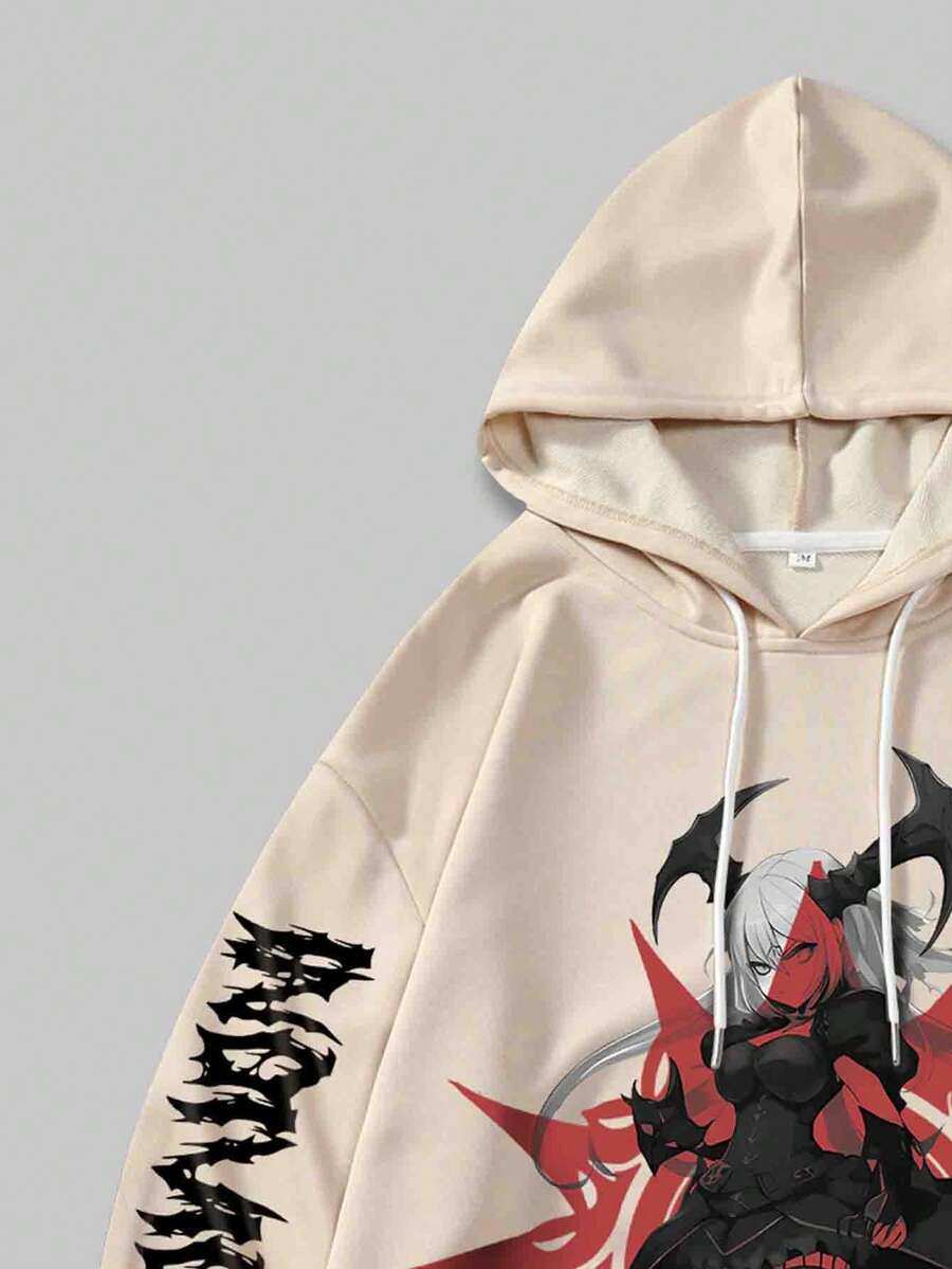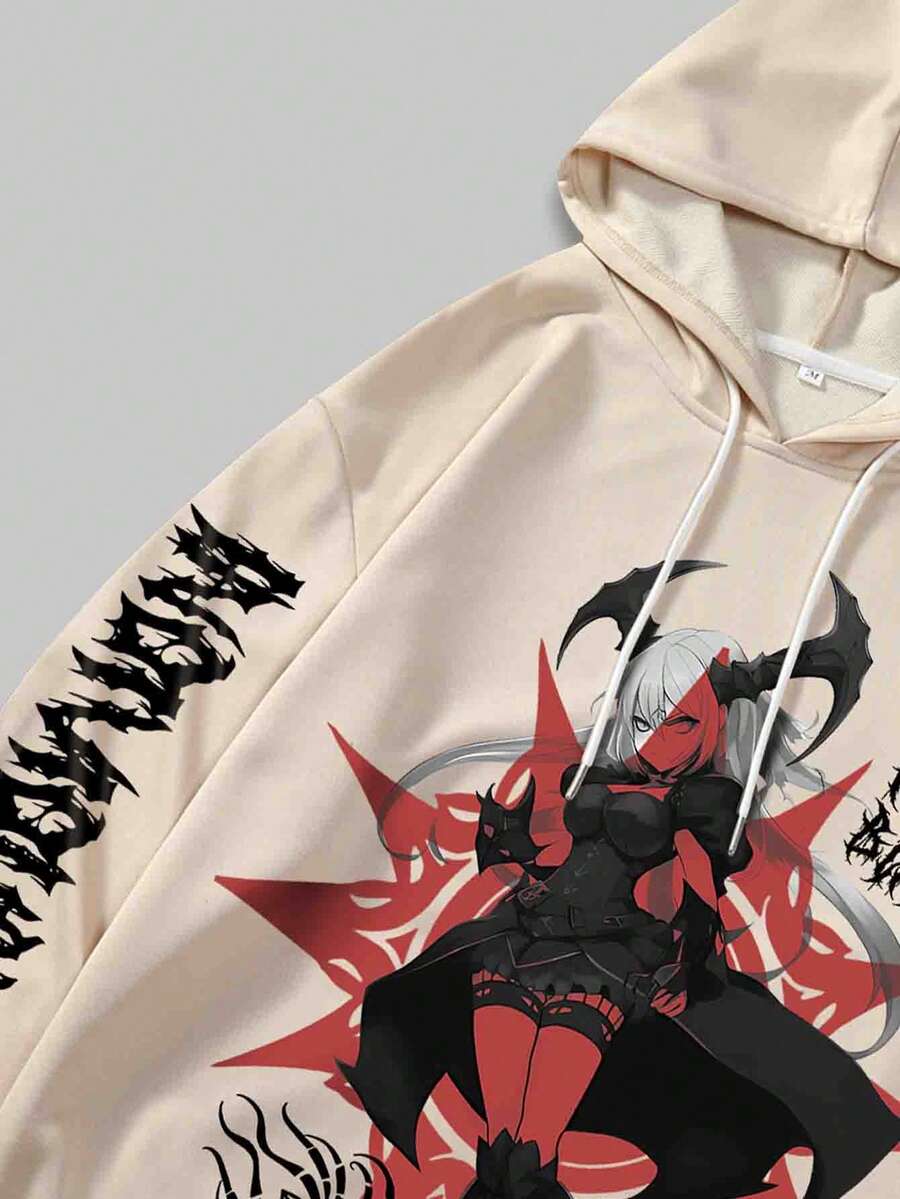 Anime Guys Figure & Letter Graphic Drawstring Hoodie