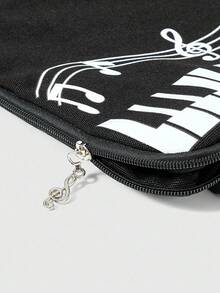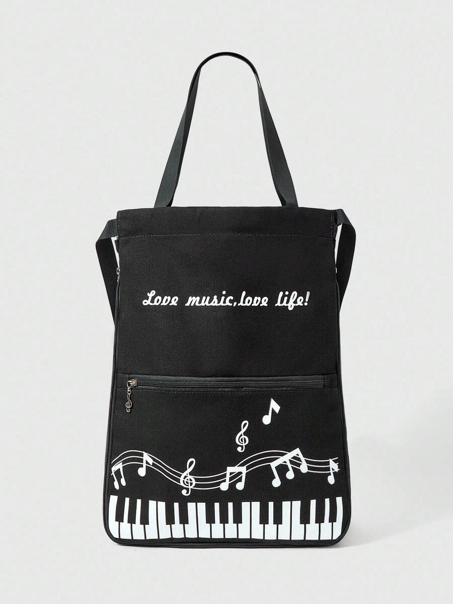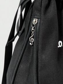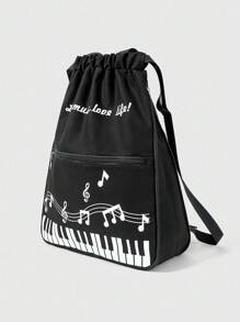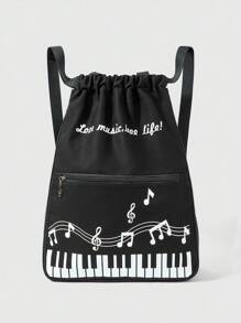 Anime Letter & Music Note Piano Keyboard Print Multi-Zipper Pocket Large Capacity Drawstring Backpack & Handbag, Versatile Casual Unisex Daypack For Commuting, College, Travel
