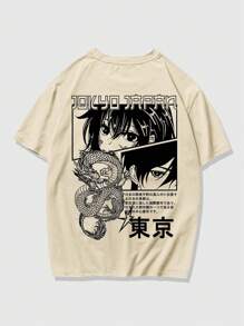Anime Men Figure Graphic Tee, School, 2000s Style