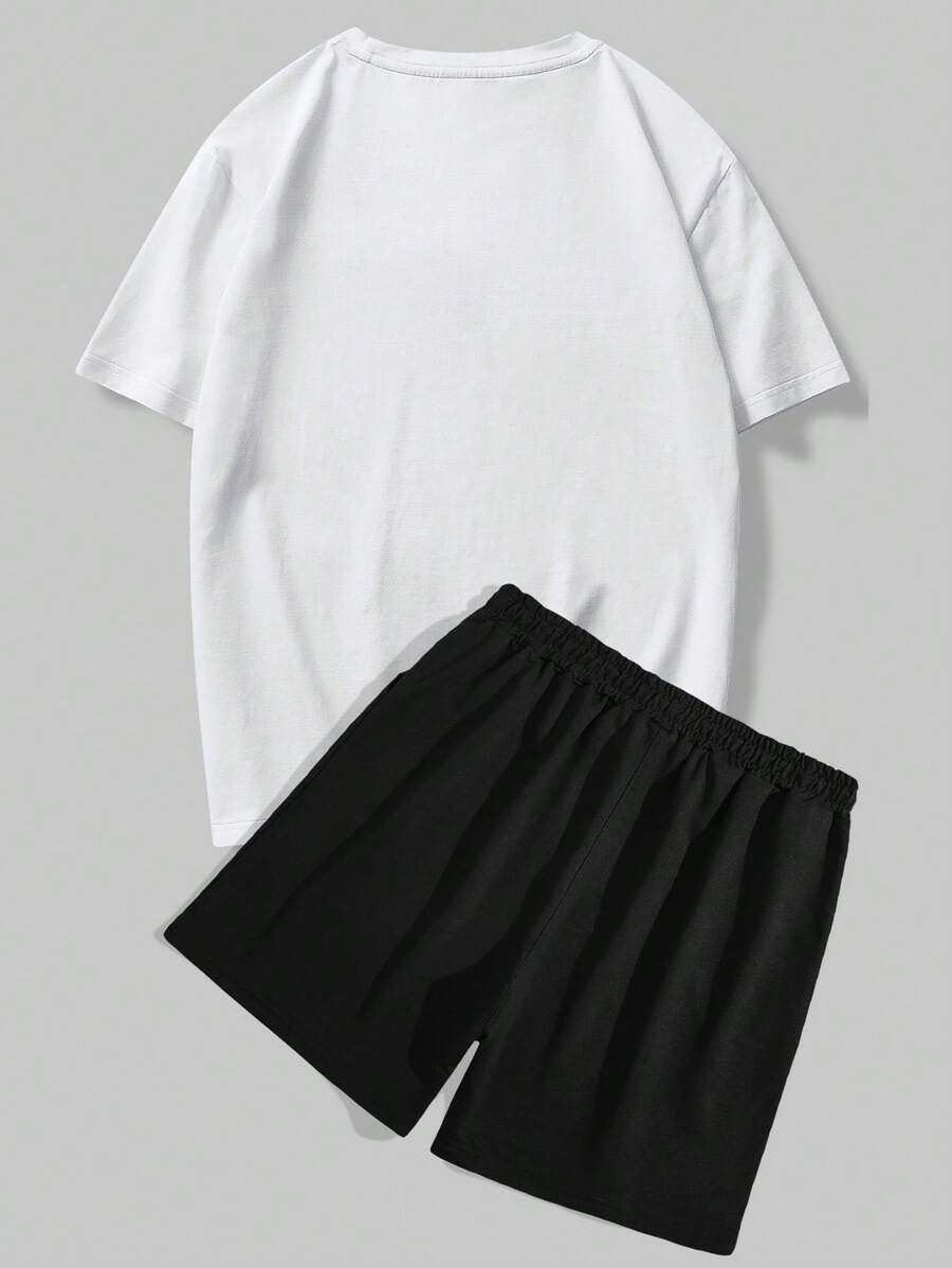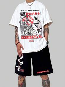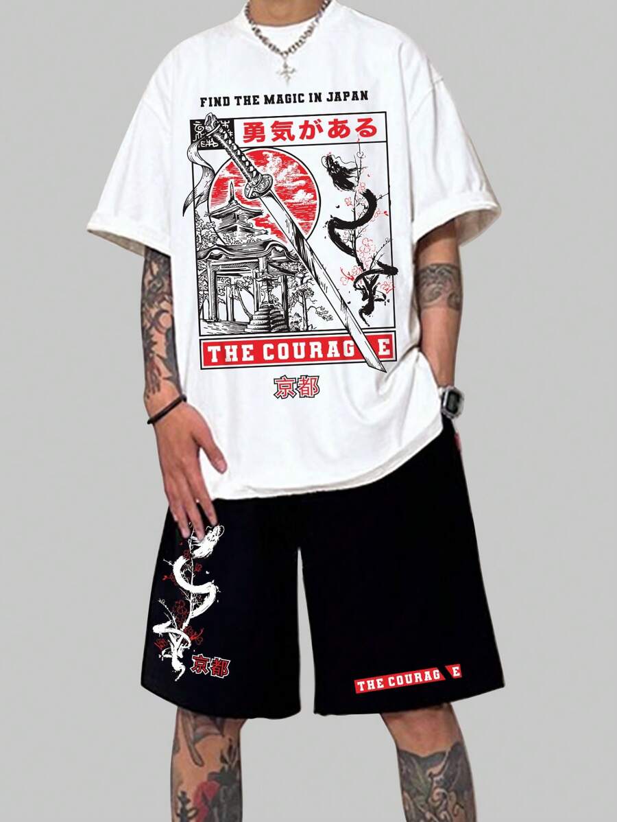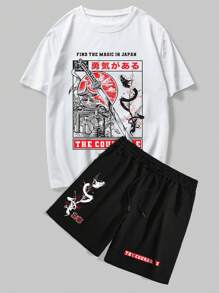 Anime Men'S Japanese Style Printed Short Sleeve T-Shirt And Shorts Set
