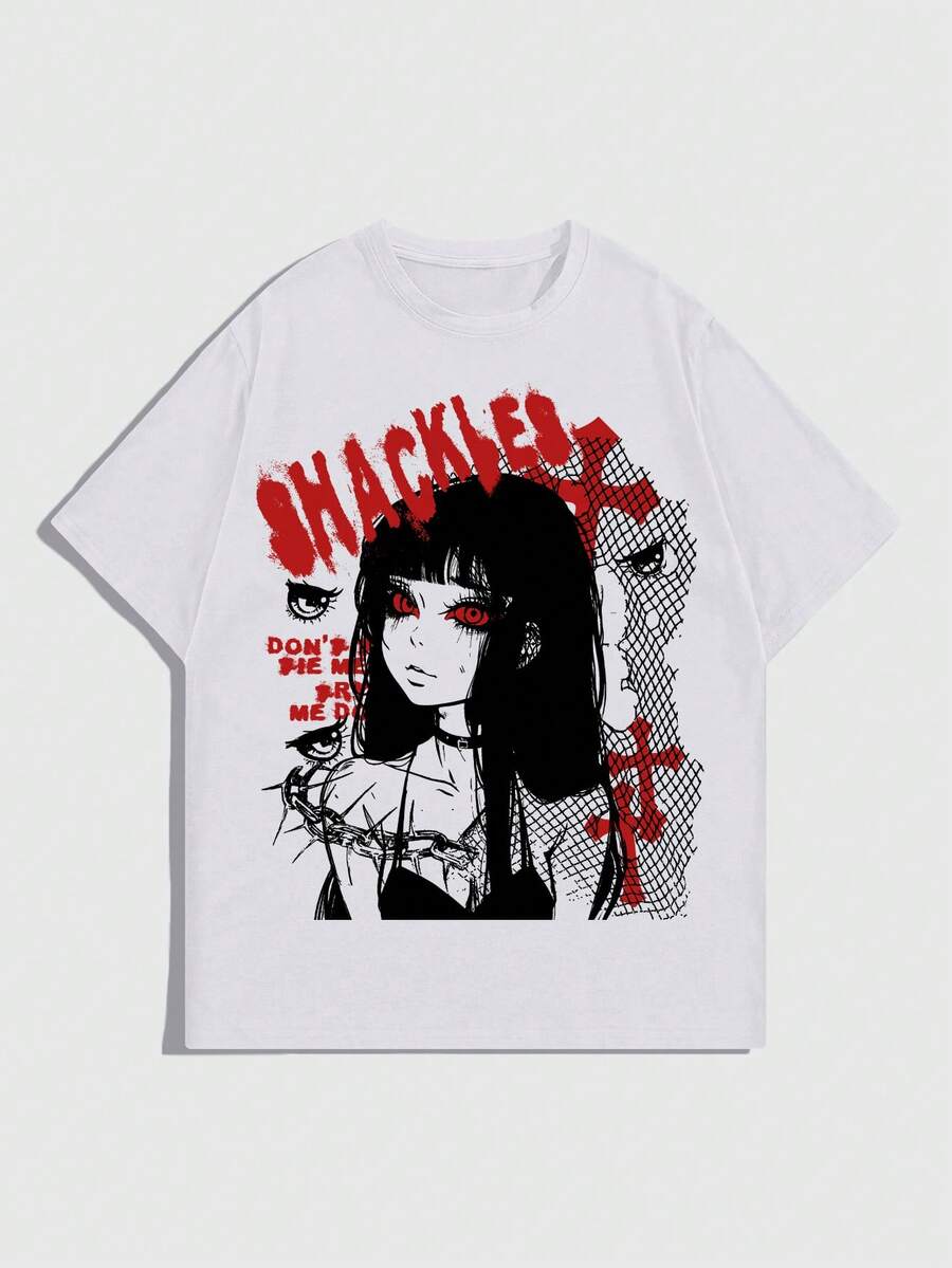 Anime Men Short Sleeve T-Shirt With Code, Character And Slogan Print, Summer