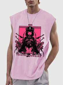 Anime Men Summer Casual Cartoon Character And Letter Print Wide Strap Tank Top