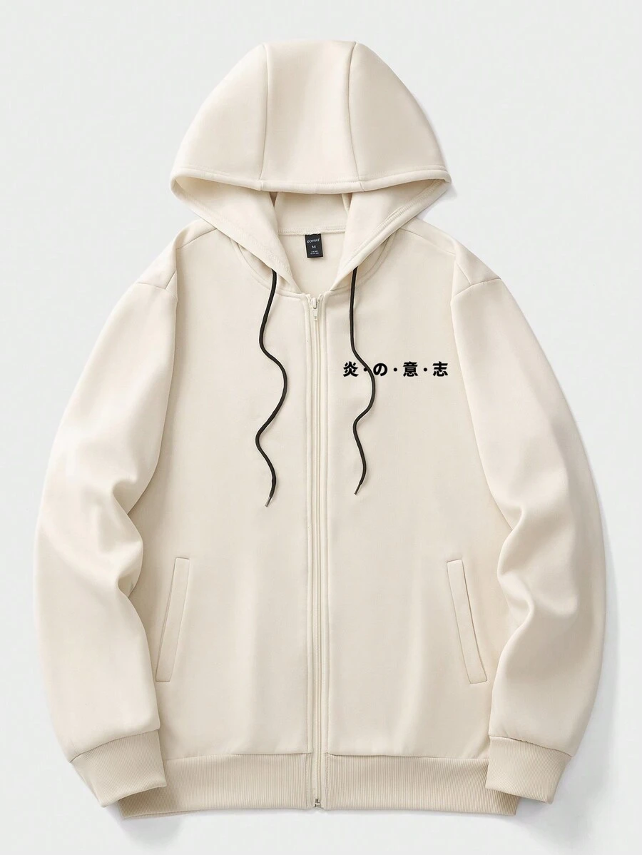 Anime Men's Casual White Hoodie With Cartoon Character Print