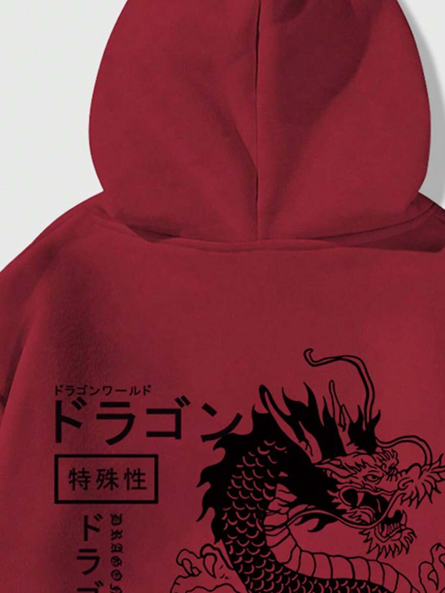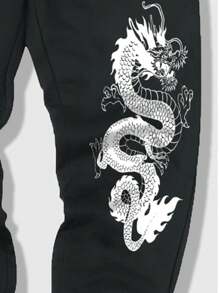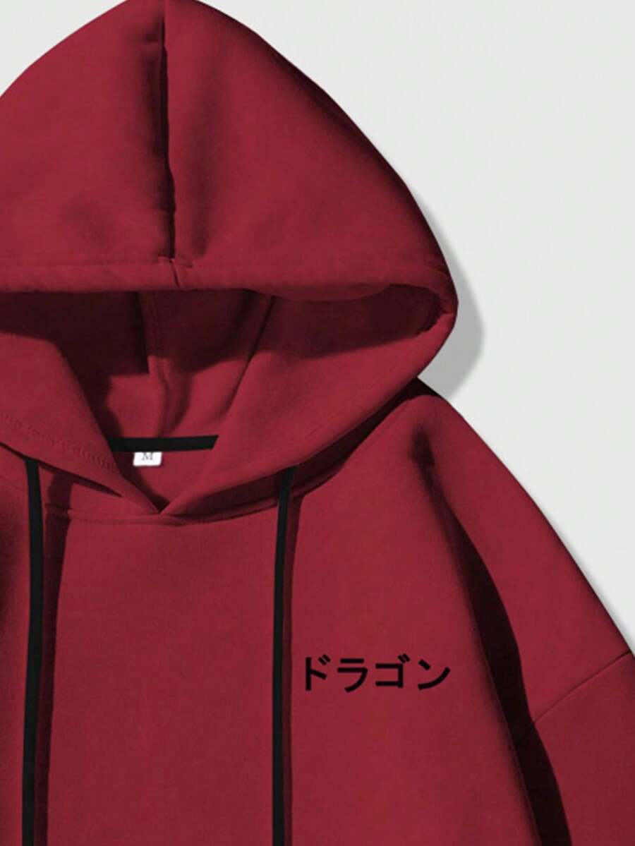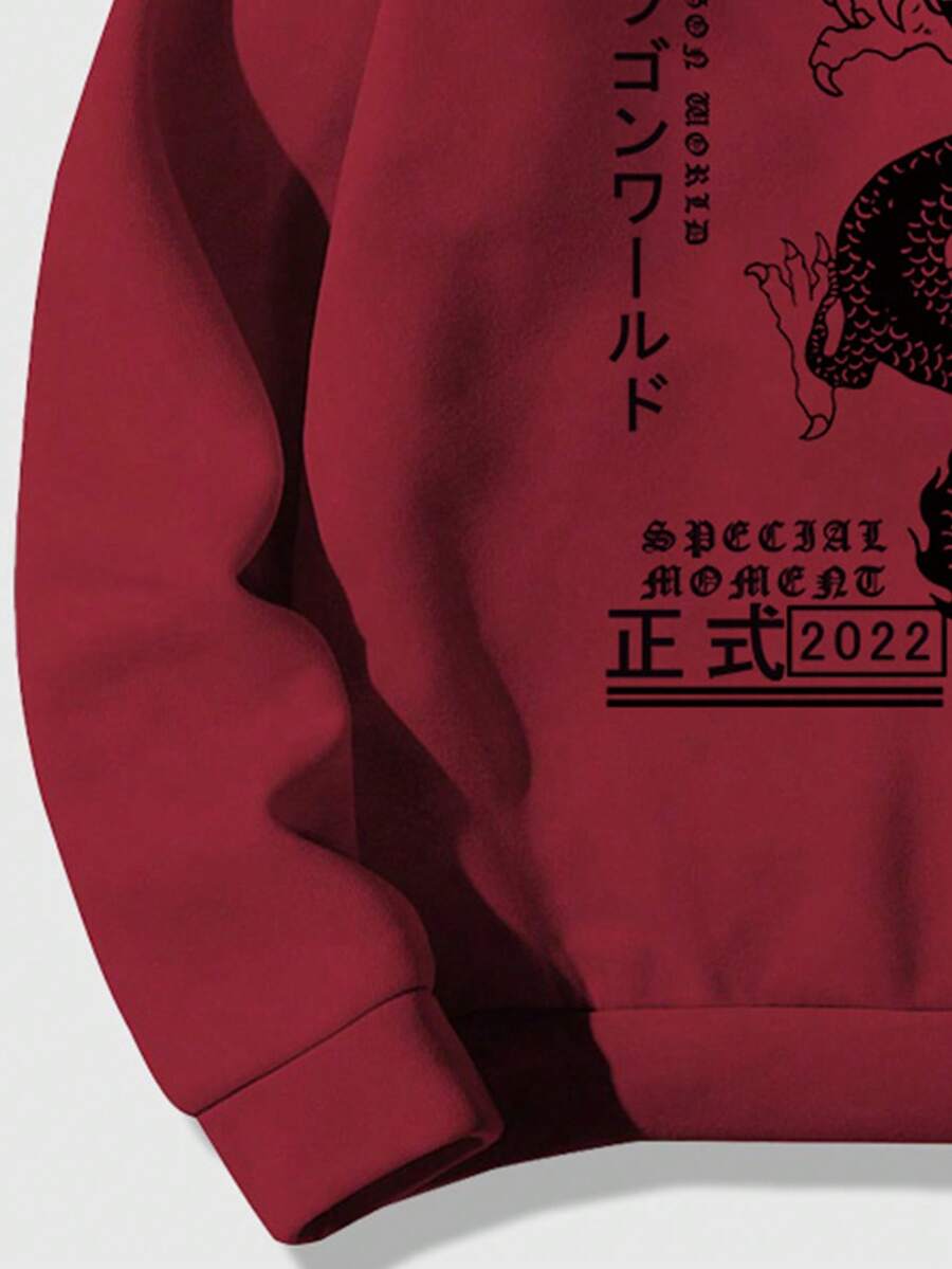 Anime Men's Chinese Dragon & Letter Print Hoodie And Pants Set