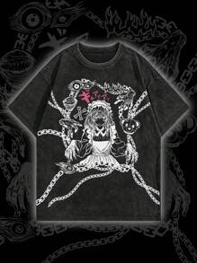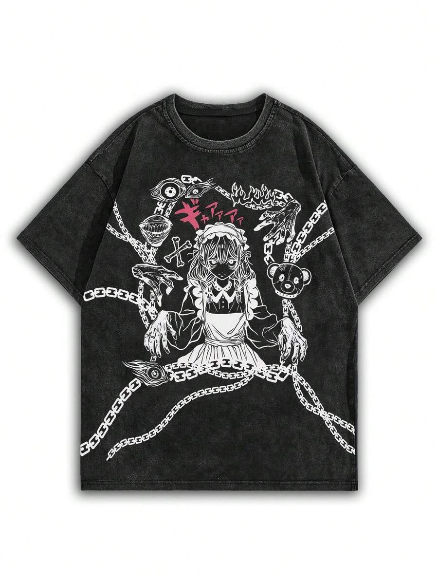Anime Men's Distressed Acid Wash Short Sleeve T-Shirt
