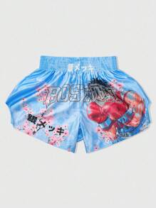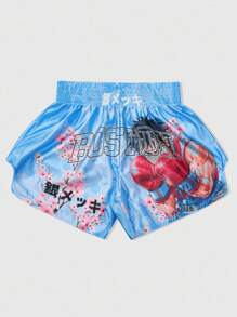 Anime Men's Graphic Print Fight Street Style Sakura Flower Japanese Text Inspired Casual Shorts