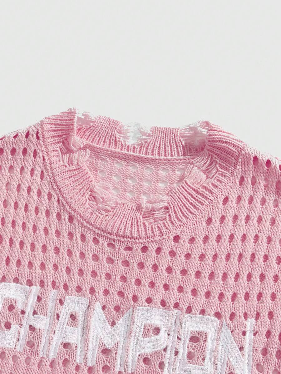 Anime Men's Hollow Ripped Knit Short Sleeve Sweater