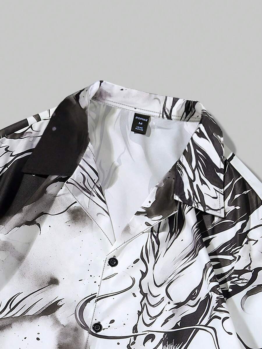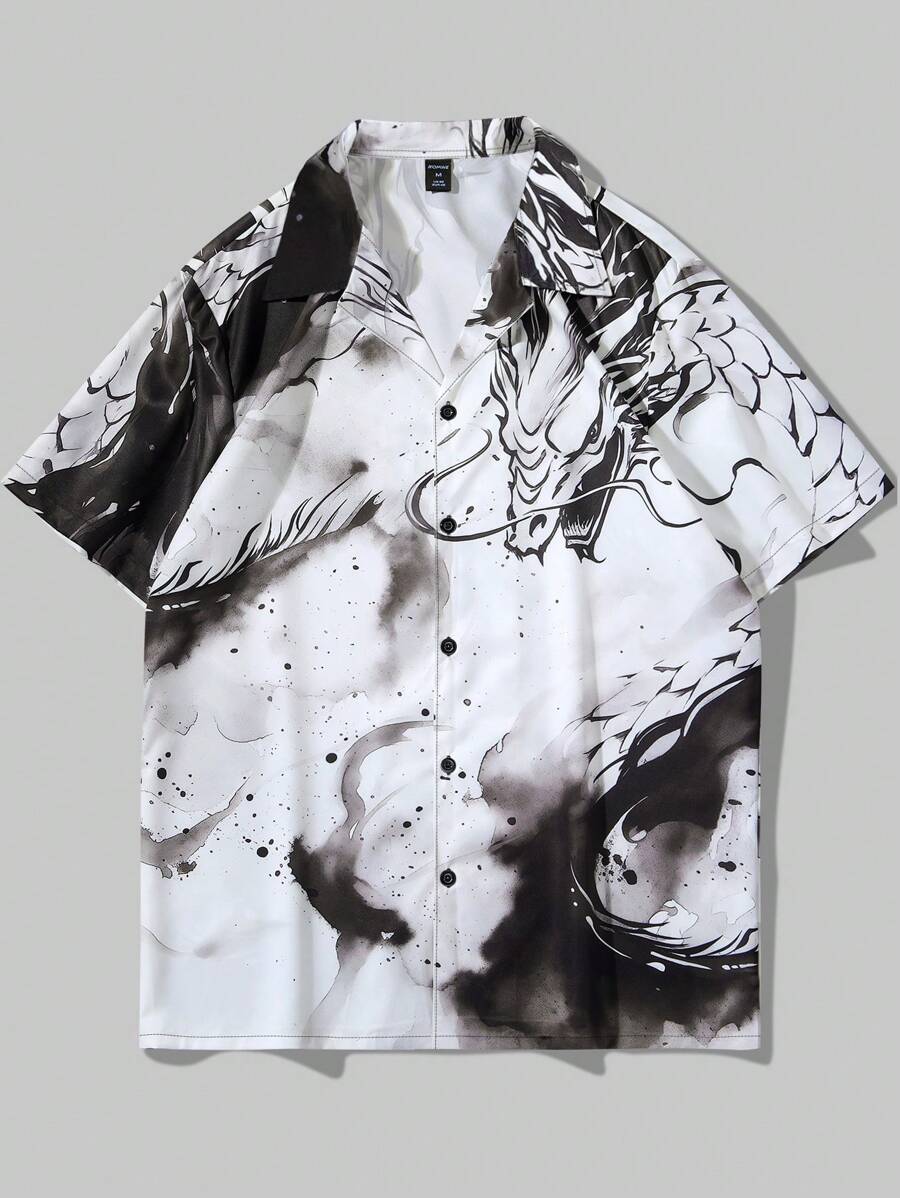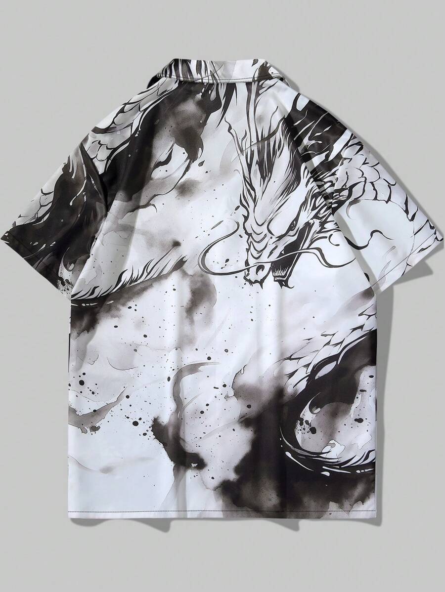 Anime Men's Short Sleeve Shirt With Dragon Print