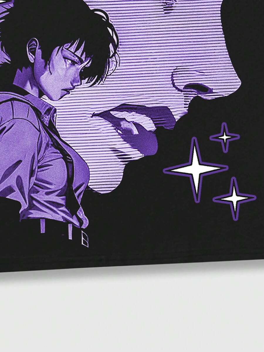Anime Men's Subculture Cartoon Character Print Short Sleeve T-Shirt, Summer