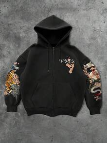 Anime Men's Zip-Up Graphic Print Dragon Tiger Sweatshirt