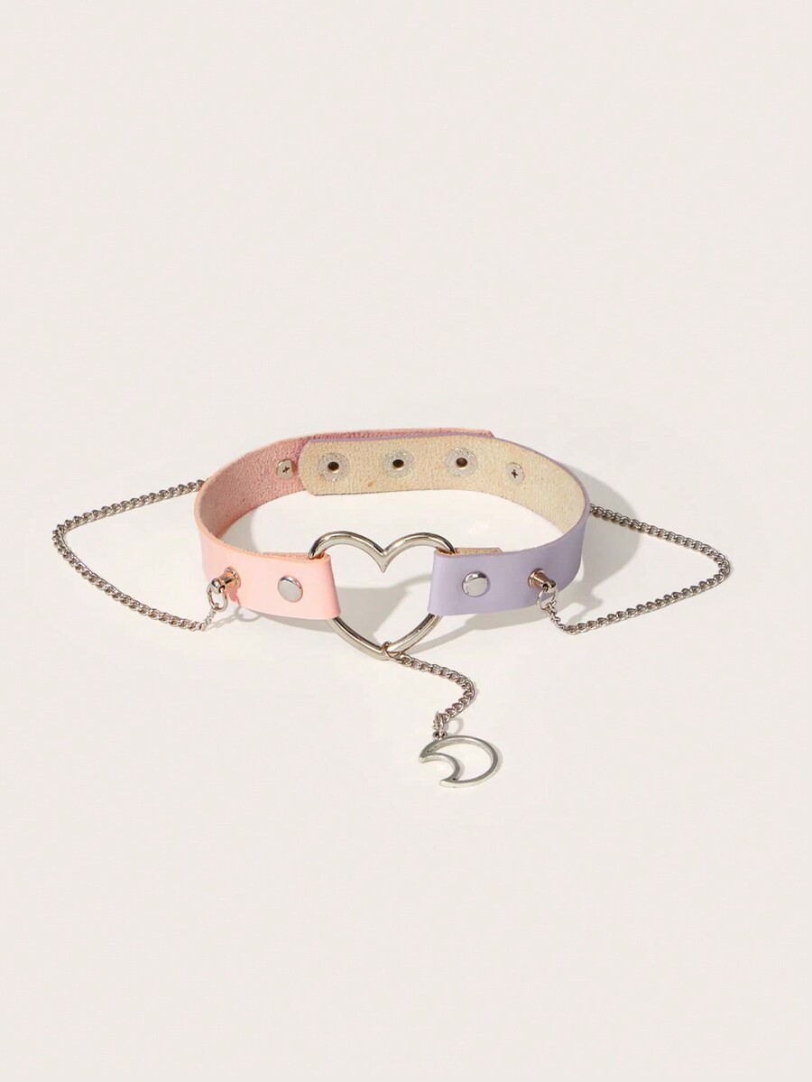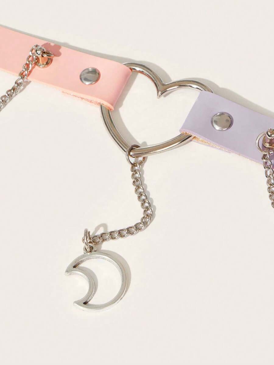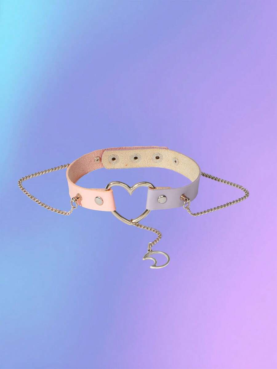 Anime Moon Shape Pendant Pu Choker Necklace