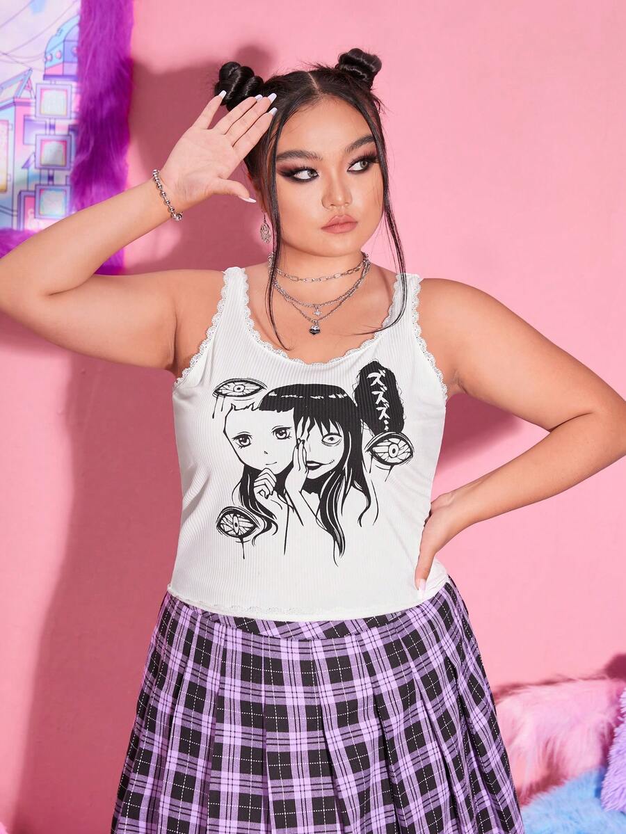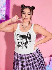Anime Plus Figure Graphic Lace Trim Tank Top