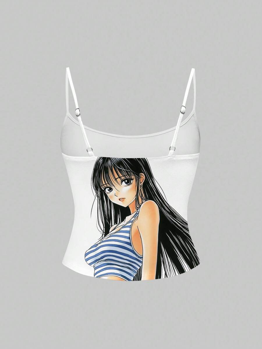 Retro Y2K Vintage Anime Girl Graphic Print White Camisole Tank Top