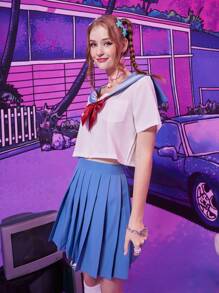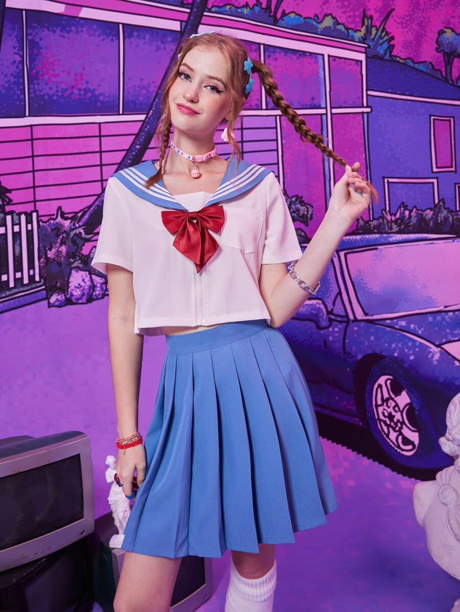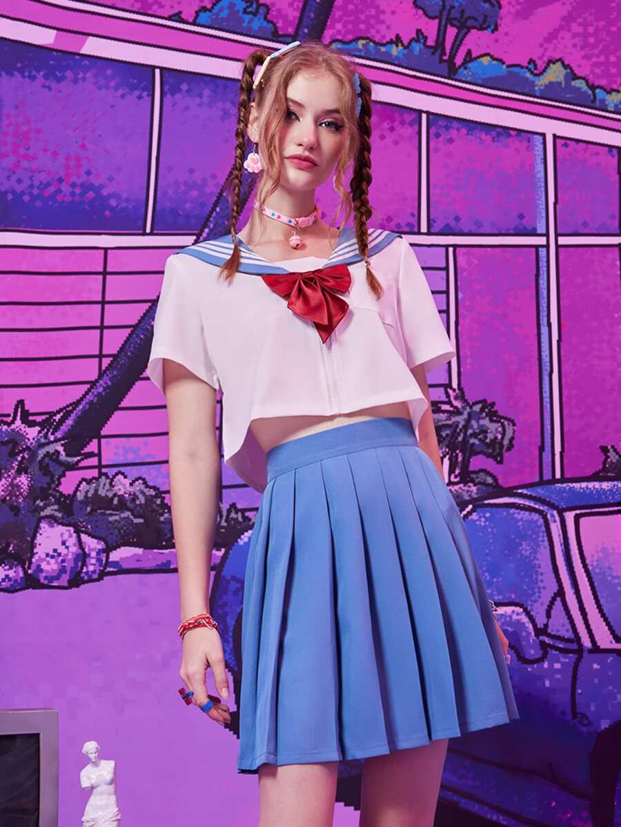 Anime Sailor Collar Bow Shirt & Pleated Skirt