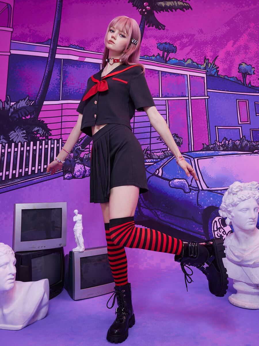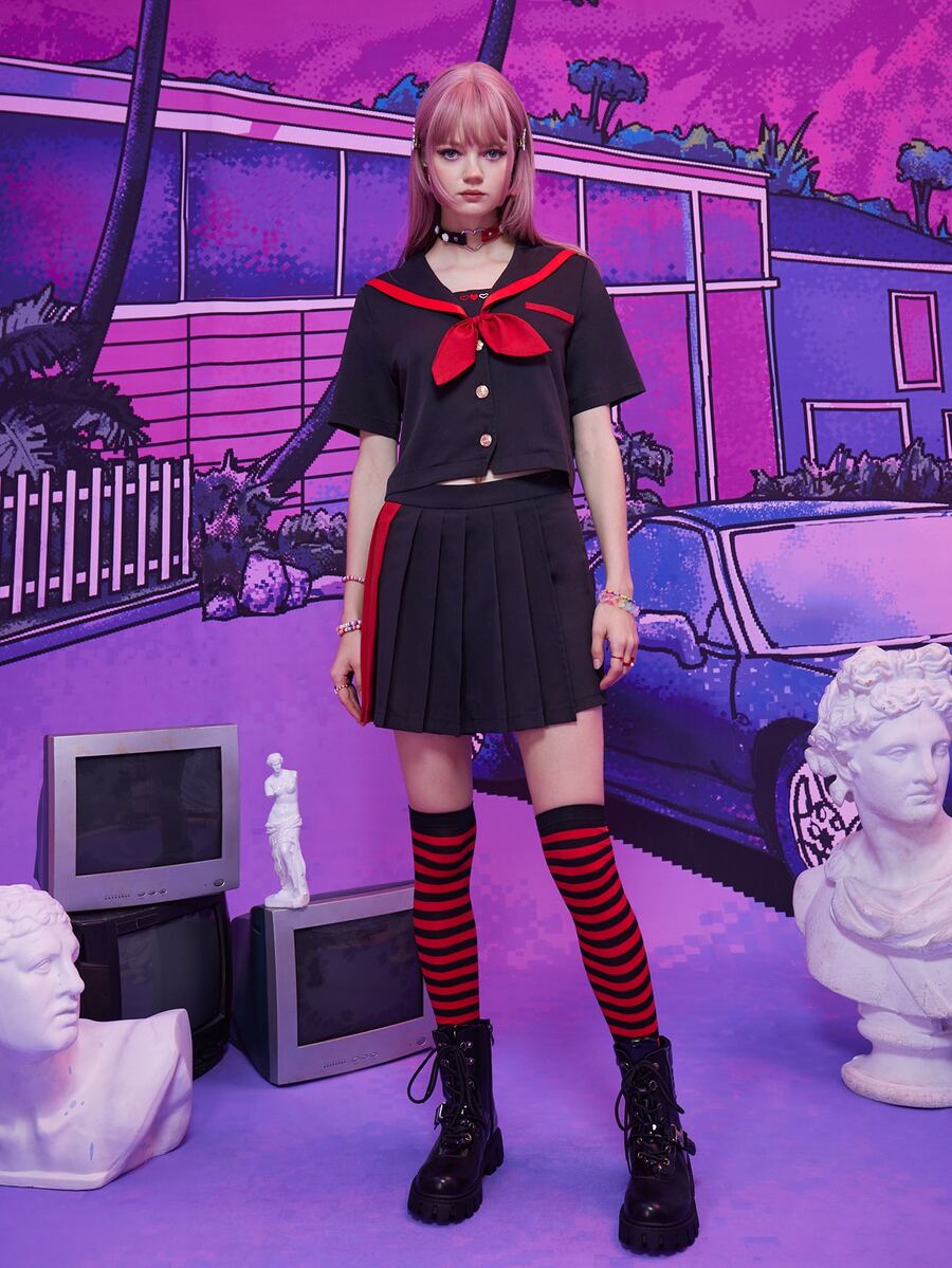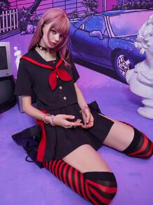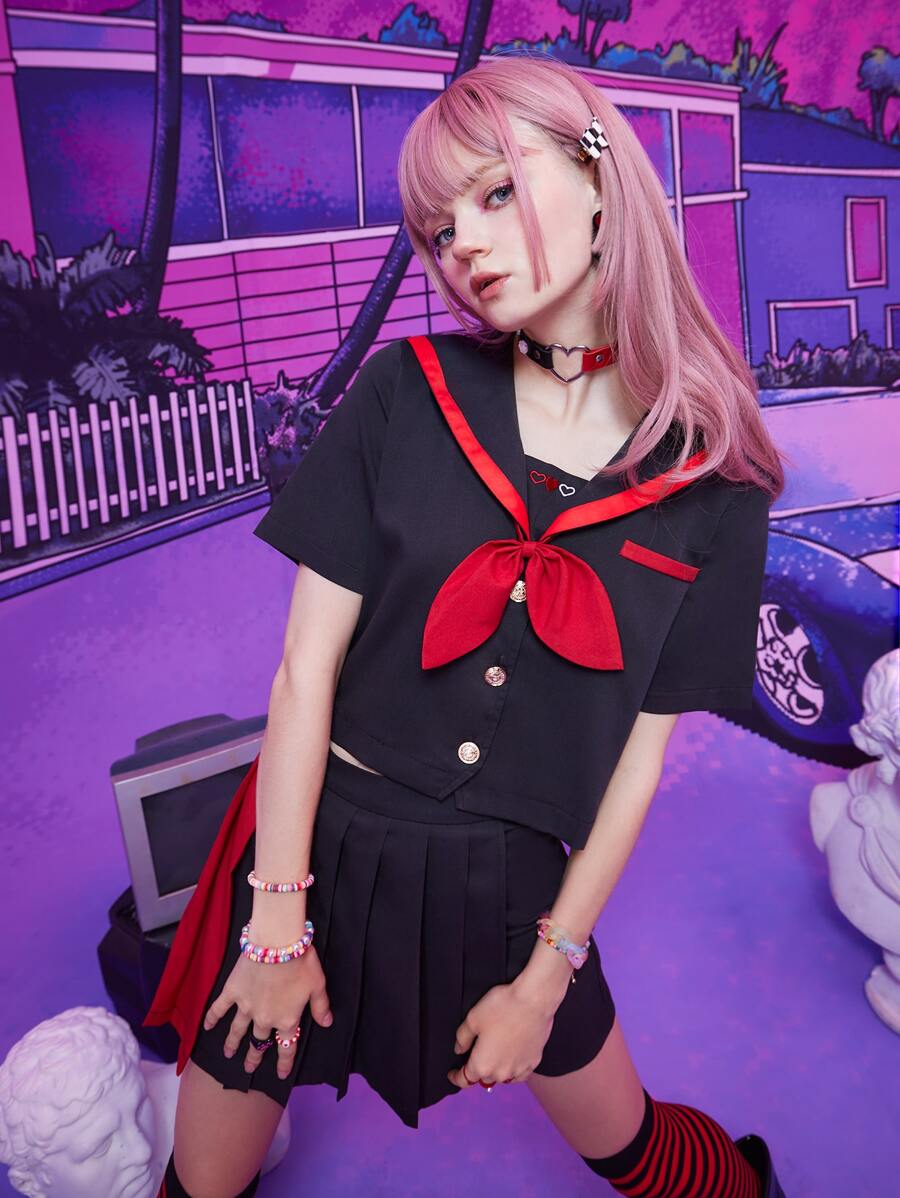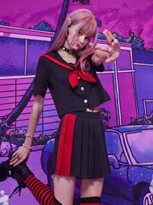 Anime Sailor Collar Bow Shirt & Pleated Skort