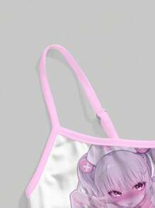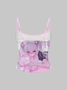 Anime Sexy & Cute Nurse Style Girl's Summer Tank Top With Crossfit, Heart, Teddy Bear All-Over Print, White Suitable For Going Out