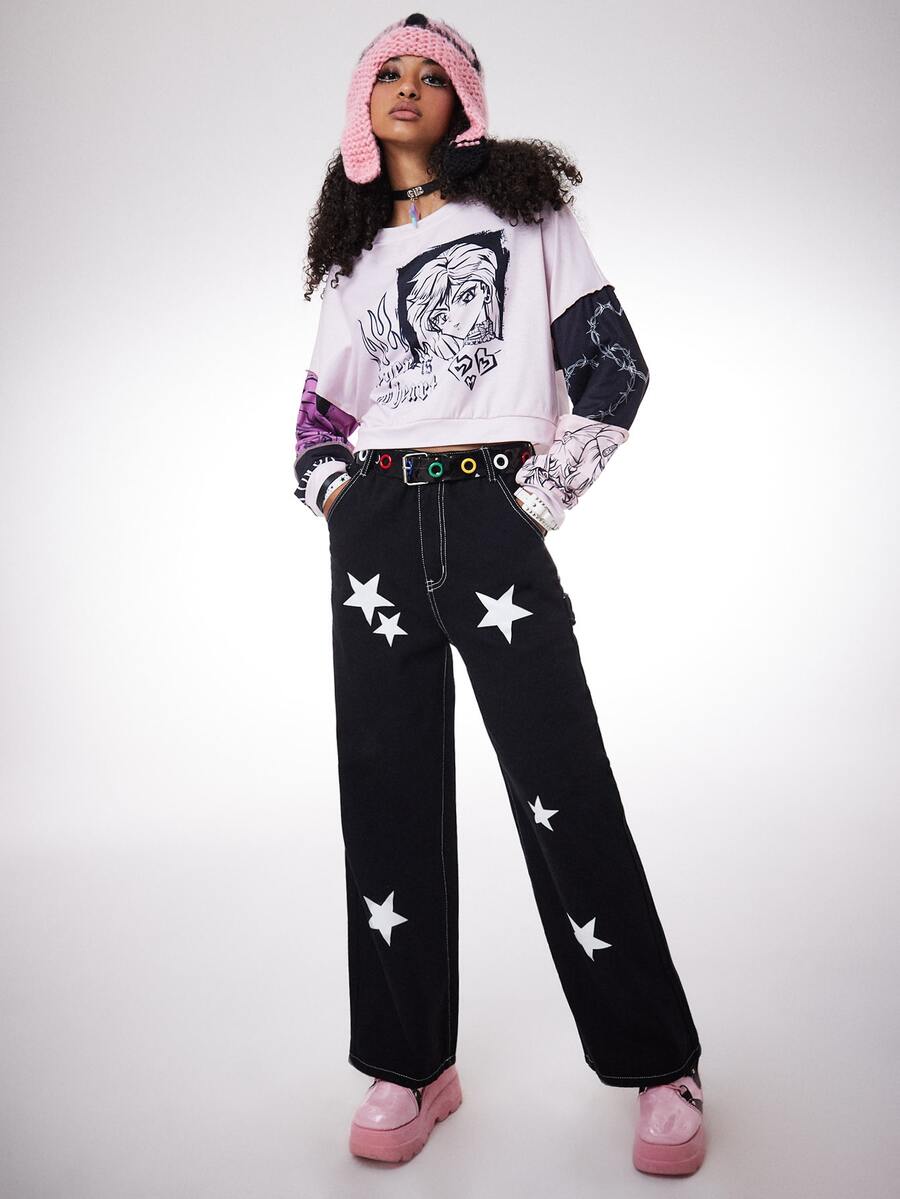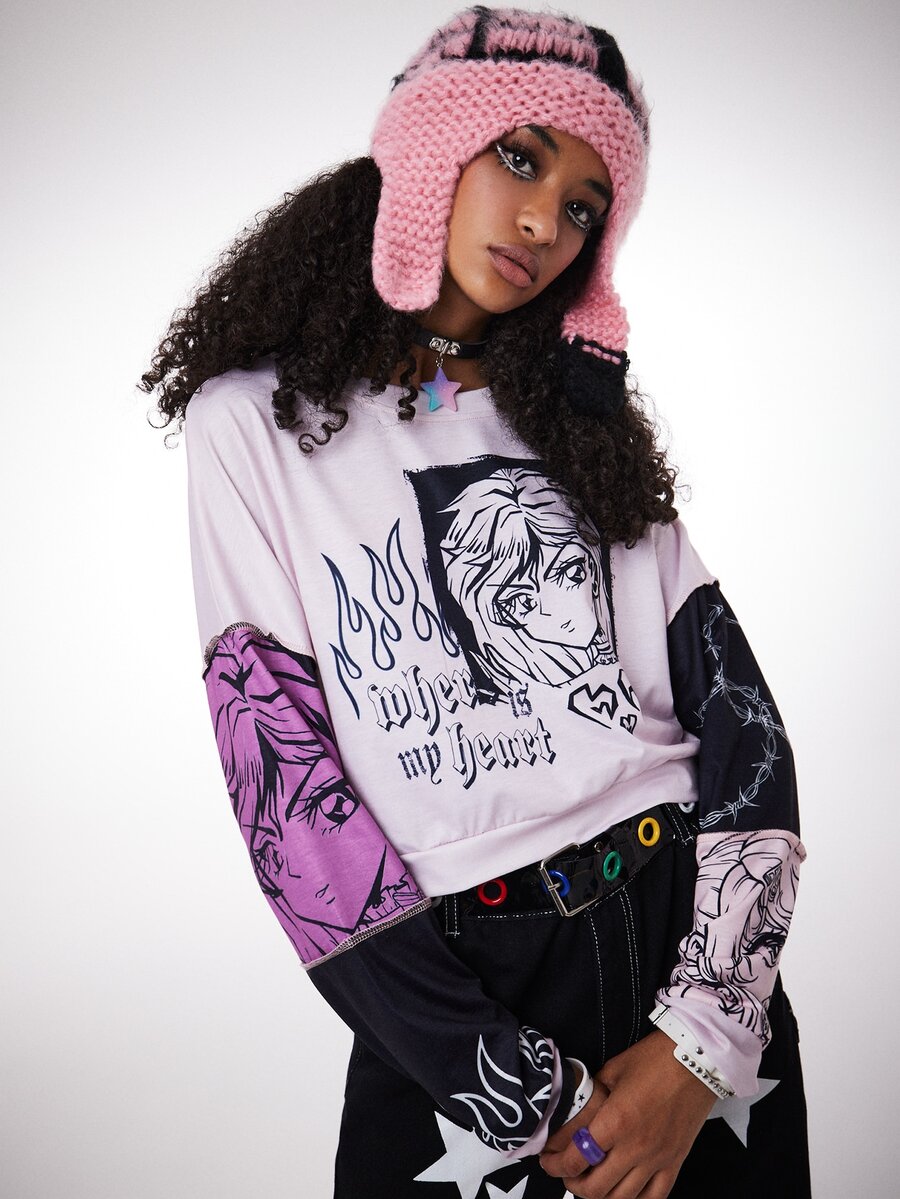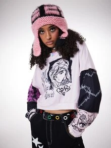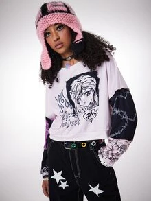 Anime Slogan Figure Graphic Drop Shoulder Sweatshirt