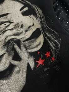 Anime Unisex Cross Graphic Rhinestone Punk Street Style Long Sleeve Hoodie, Autumn/Winter