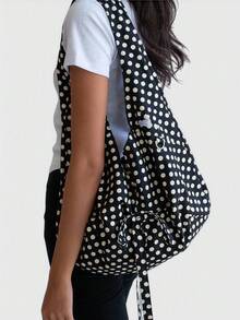 Anime Vintage Minimalist Black & White Polka Dot Women's Large Capacity Shoulder Bag, Casual Tote Bag, Suitable For Daily Commute, Travel, Etc.