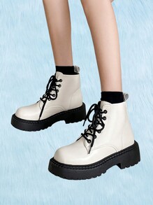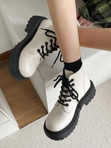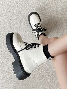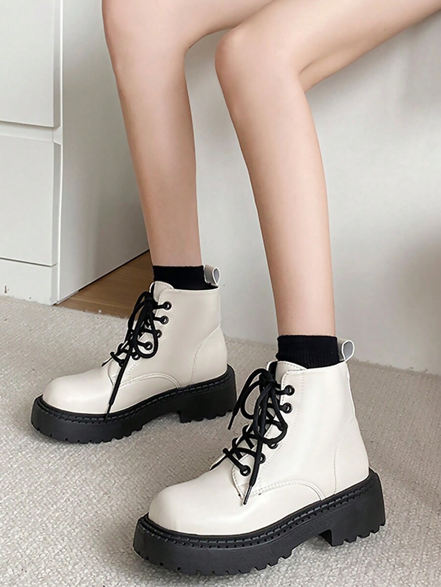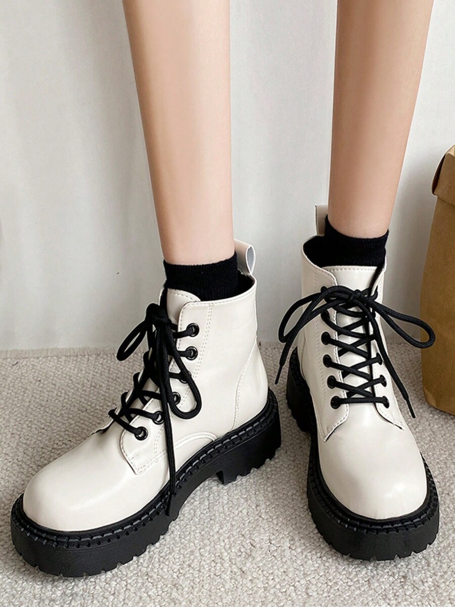 Anime Women Lace Up Front Combat Boots, Minimalist Outdoor Fashion Boots