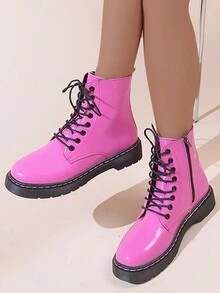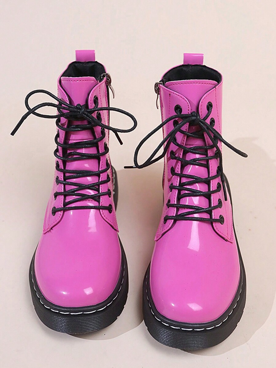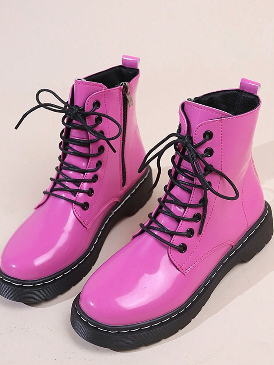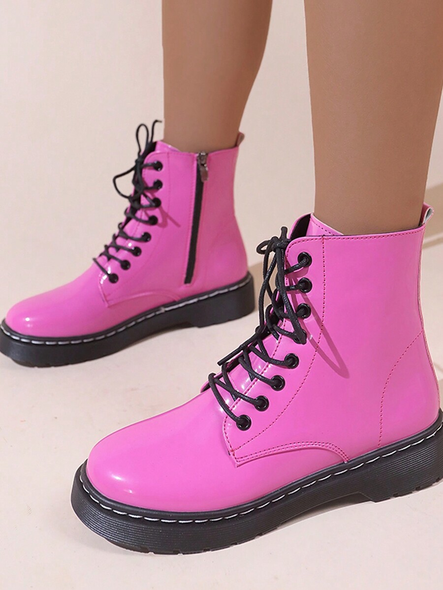Anime Women Minimalist Side Zipper Lace Up Front Combat Boots, Funky Outdoor Fashion Boots