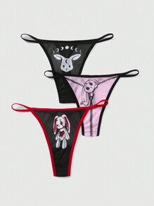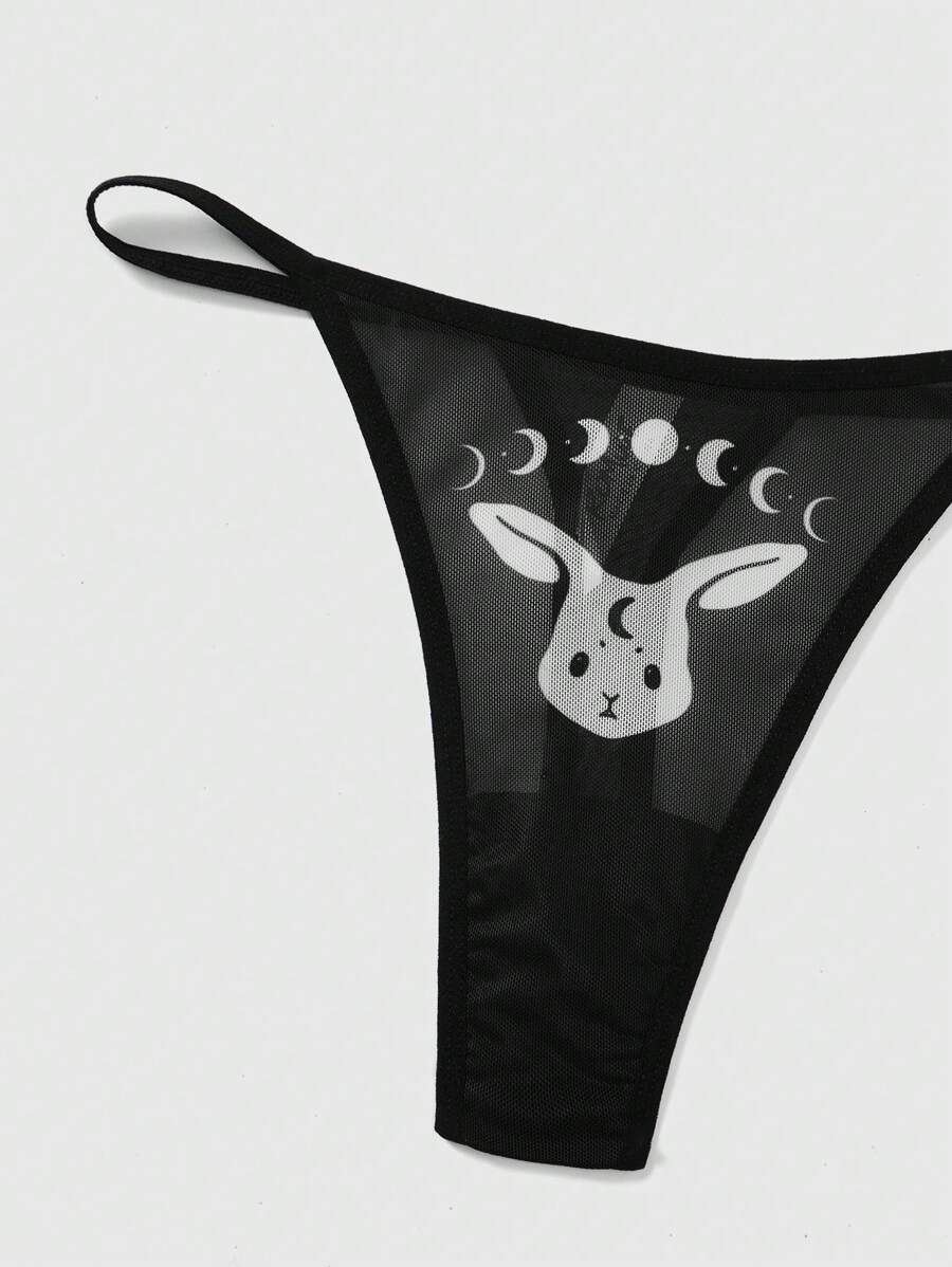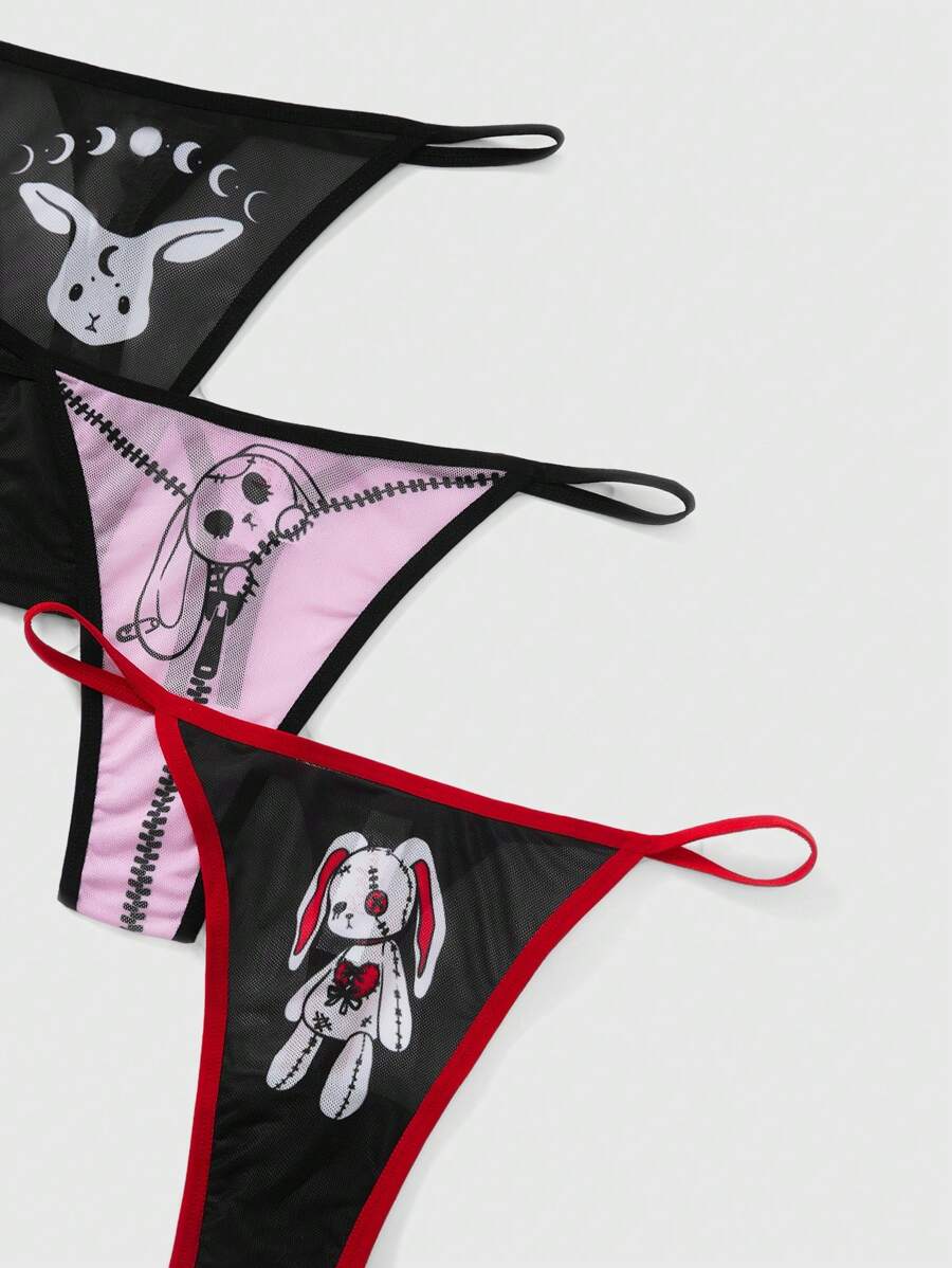 Anime Women'S 3-Pack Sexy Mesh Printed Underwear With Bunny Ears Design