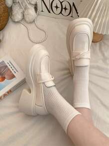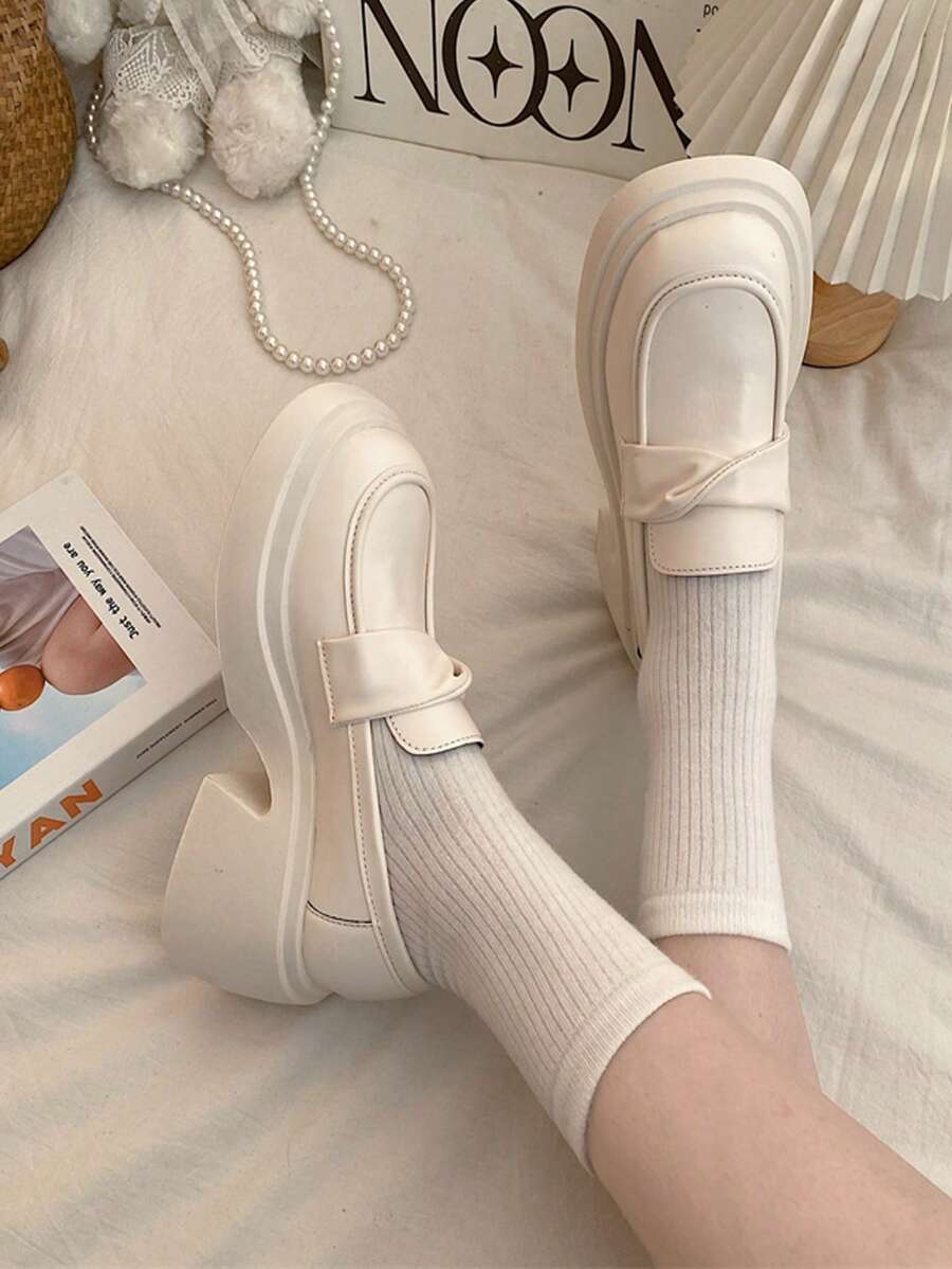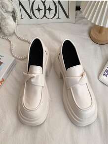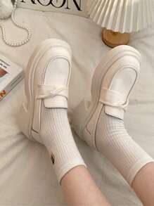 Anime Women Solid Twist Decor Flatform Loafers, Preppy Outdoor Shoes