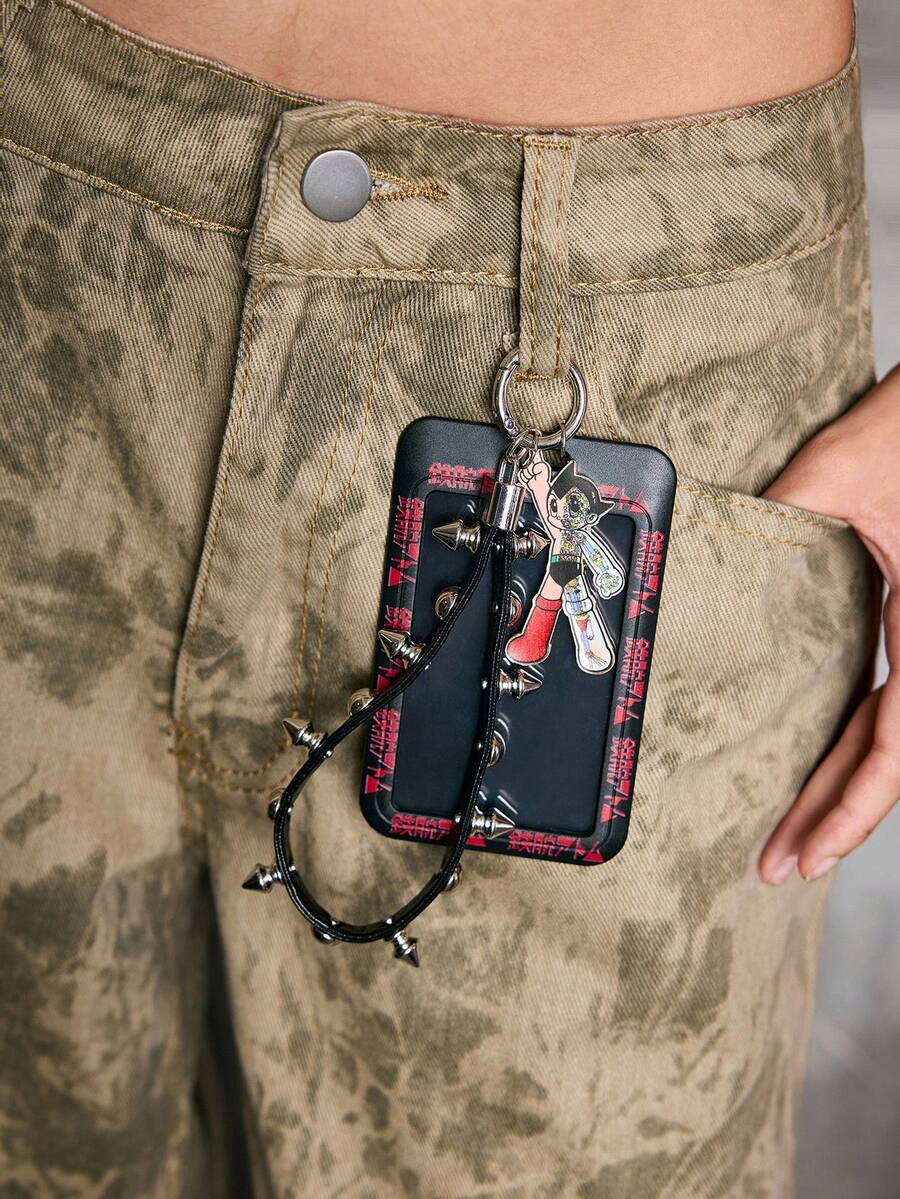 Astro Boy X ROMWE 1pc Cartoon Figure Graphic Keychain Card Holder Office Bag Charm Punk Rivet Leather Strap Mobile Phone Pendant Keyring Accessory