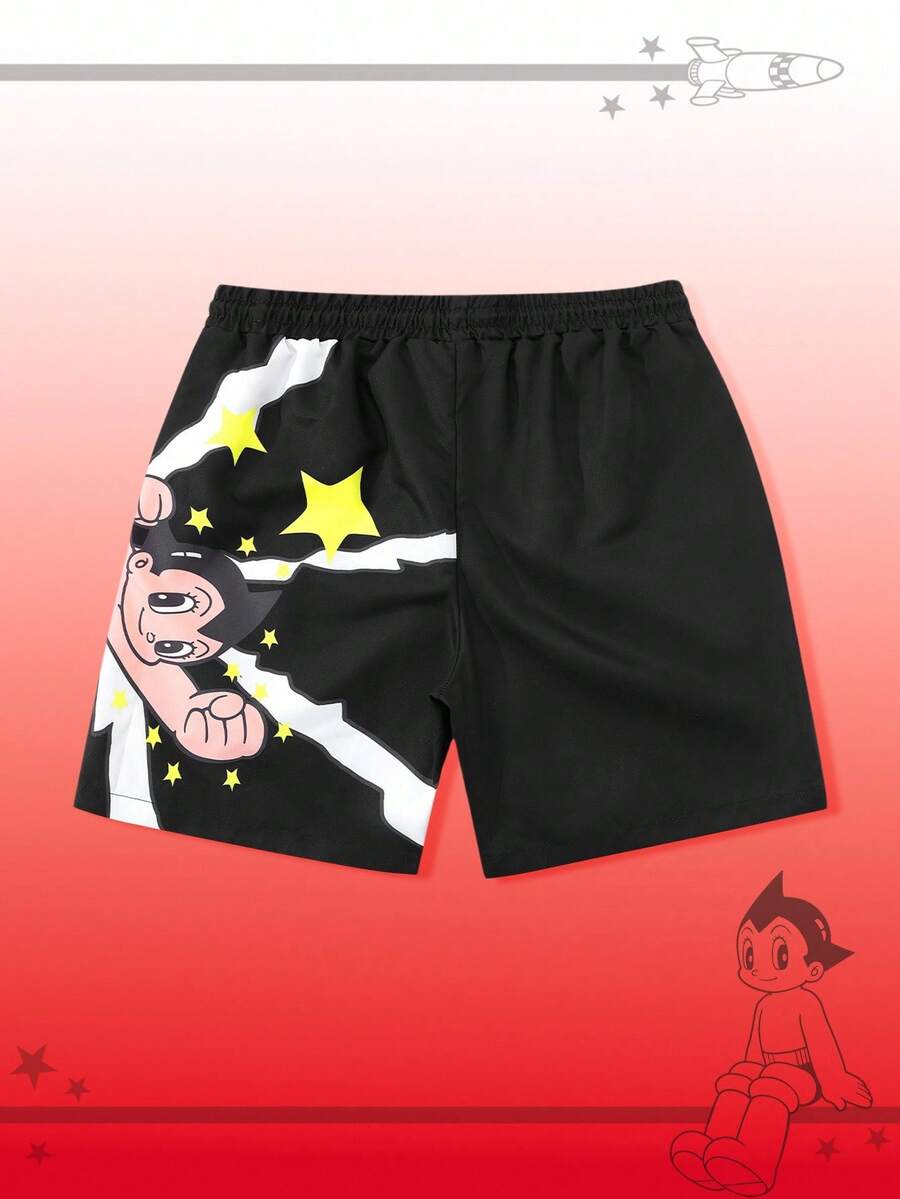 Astro Boy X ROMWE Men's Printed Woven Casual Shorts, Suitable For Spring/Summer