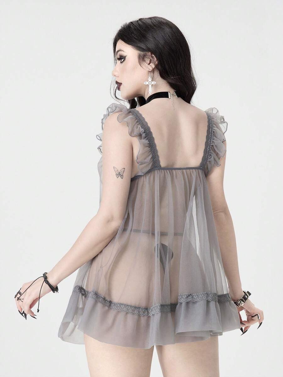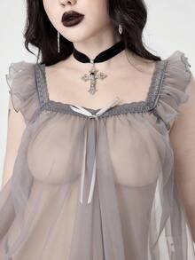 Babydoll Kawaii Cute Loose Sheer Dress, Mesh Lace Patchwork Bow Mini Dress, Sexy Tulle Dress Set