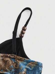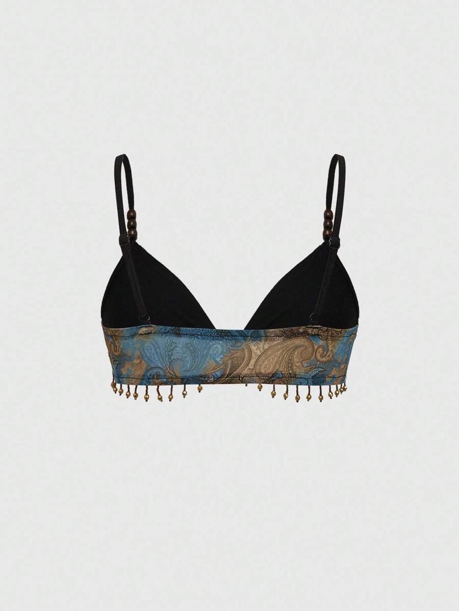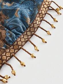 Hippie Back To School Women's Vintage Hippie Western Wooden Bead Decor Tassel Hem Paisley Print Vest, Can Be Matched With Skirt Or Pants