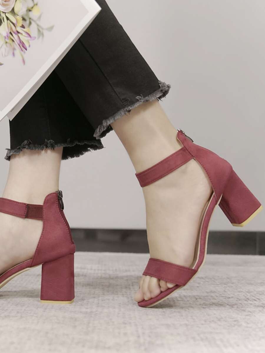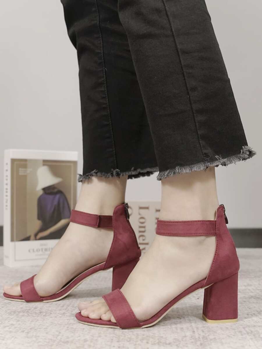 Back Zip Chunky Heeled Sandals