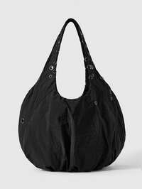 Grunge Punk Hollow Crafted Breathable Black Commuter Tote Bag, Large Capacity One Shoulder Dumpling Bag, Casual Fashion Versatile For School, Party, Shopping, Holiday