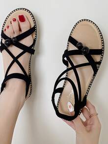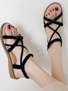Ball Decor Criss Cross Ankle Strap Sandals