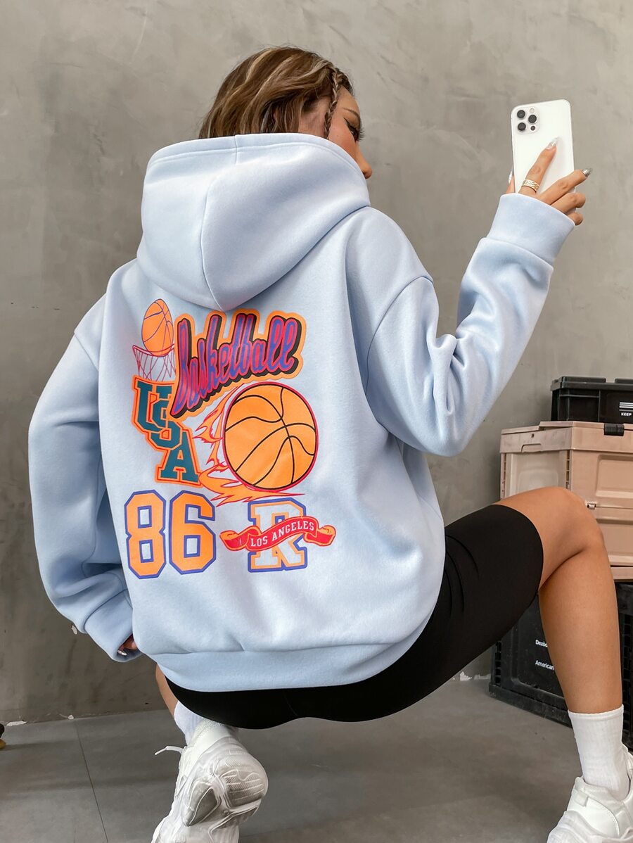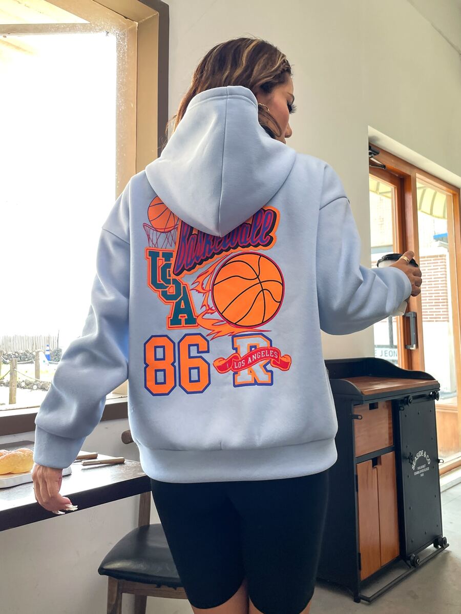 Basketball And Letter Graphic Drop Shoulder Hoodie