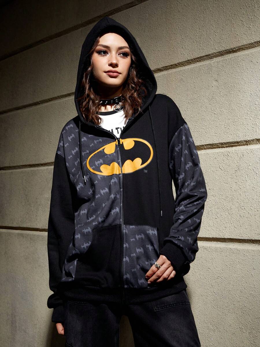 Batman X ROMWE Cartoon Graphic Zip Up Drawstring Hoodie